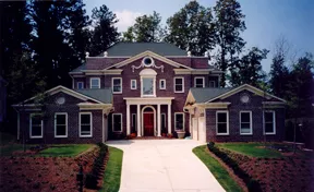 This classical home looks like a Mega Mansion, yet its square foundation, simple roof and stacked floors make it very cost effective to build. Upon entering the home, the elegant hall leads into a grand salon/morning room with a 10'4" coffered ceiling. Adjacent is the spacious kitchen which has a 6' x 10' granite island with an abundance of cabinets and a large walk in pantry. A porch off the back of the home allows for outdoor meals and entertaining also perfect for homes with a view or on a golf course. The home also features a library with a 10' ceiling and a dining hall for the most elegant dinner occasions. This home is enveloped in hardwood staircases that swoop up and around, leading to the centrally located circular master suite measuring 18 feet in diameter. There are three more bedrooms on the second floor, all with plenty of closet space, one with a Jack and Jill bathroom, and the third a private bathroom. A porch off the master allows for a romantic view. This is one of the few homes of its size that also has a four-car side entry garage, giving you plenty of room for parking or storage.