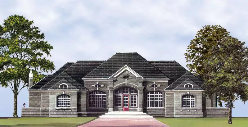 This floor plan is inspired by alluring contours and a generous provision of style and comfort. The vestibule ushers you to the two-story foyer, bounded by the dining room on the left, and the hushed study to the right. The two-story grand room lies at the end of the foyer, featuring a romantic fireplace between twin sets of double doors, which open to an angled veranda. The indulgent master suite is accented by a beautiful coffered ceiling and window wall, conferring views upon the veranda. The suite features its own see-through fireplace and private sitting area.