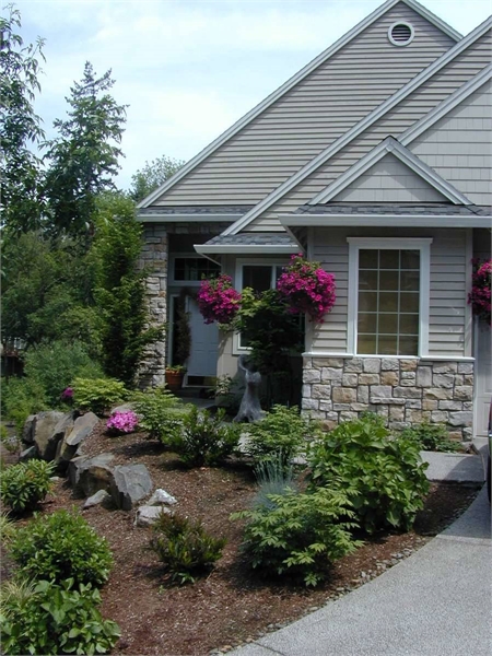Windows scoop in light and the view. Ceilings in the breakfast nook, great room, and dining room are vaulted. Columns highlight the entry to the dining room.