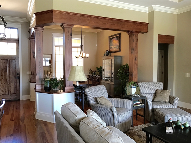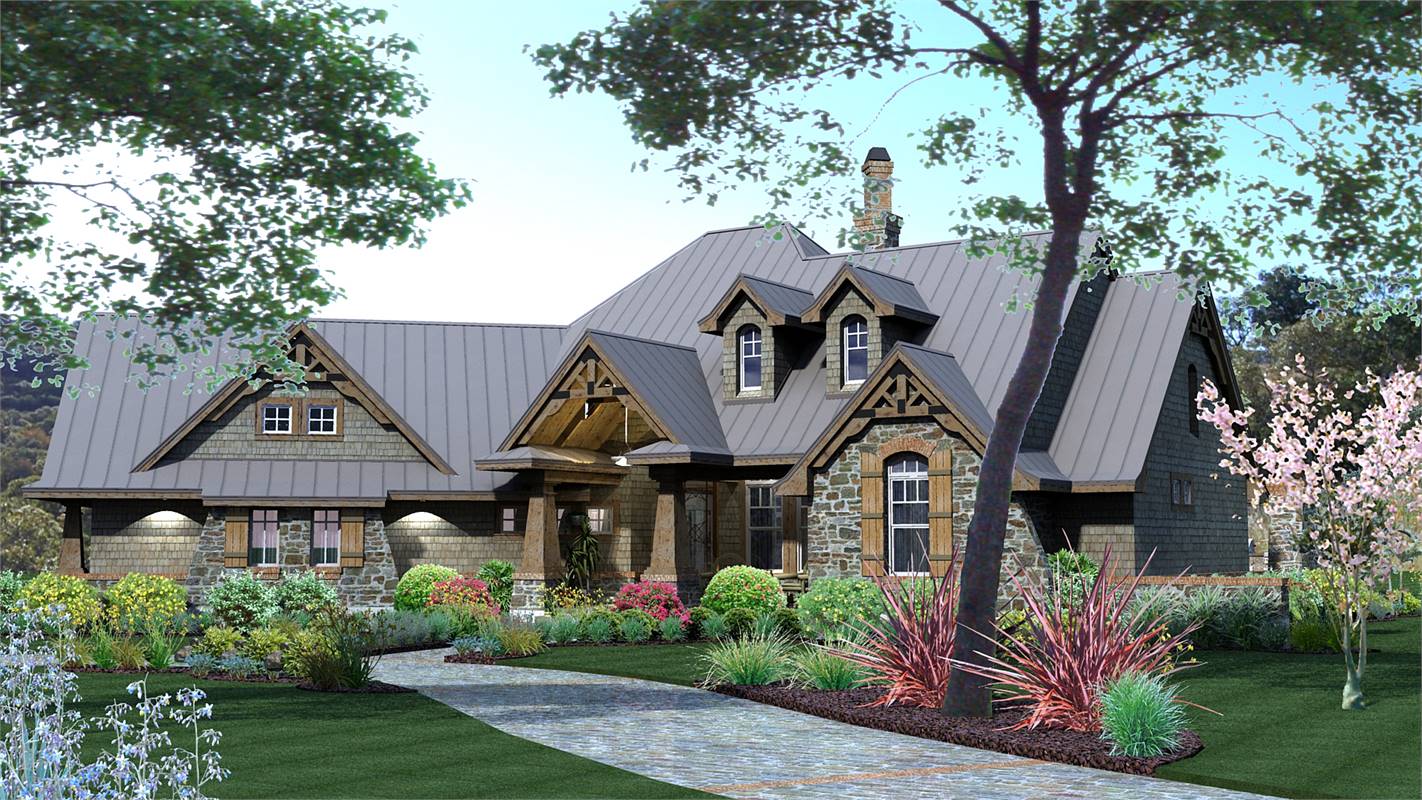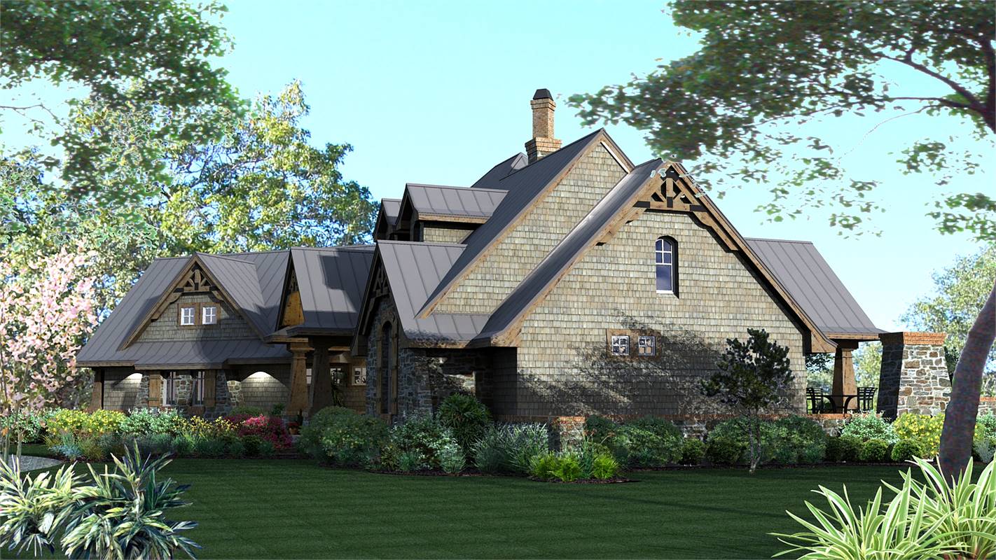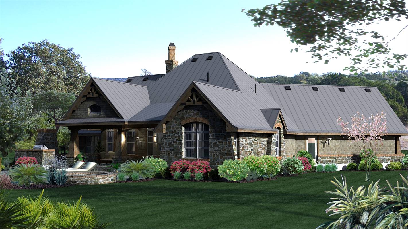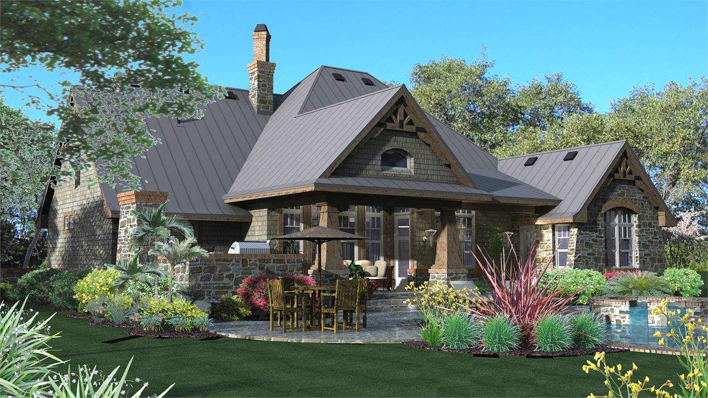 A rustic, country-style exterior gives this popular home an inviting charm. Inside, the elegant dining room serves guests in style. A see-through fireplace adds plenty of ambience. Step into the spacious family room for dessert and coffee. How about further conversation and fresh air on the lanai and barbecue porch? Youd be hard-pressed to find so many features on most house plans of only 2,106 square feet. Oh, and did we mention the soothing master bath?