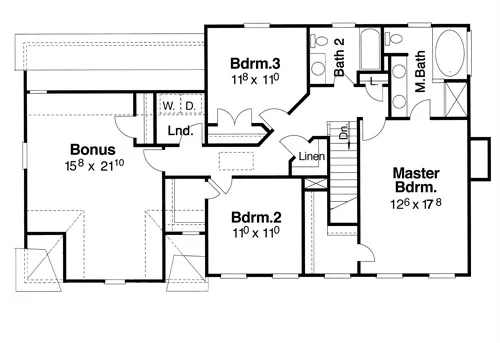 This Colonial-inspired house plan features many sought-after amenities. A family room with fireplace dominates one side of the house, while the kitchen and dining areas fill the rest of the 1st floor. Upstairs, three bedrooms and a bonus room above the garage make use of every inch of the modest home. Economy of space and shape makes this house plan very affordable for its size.