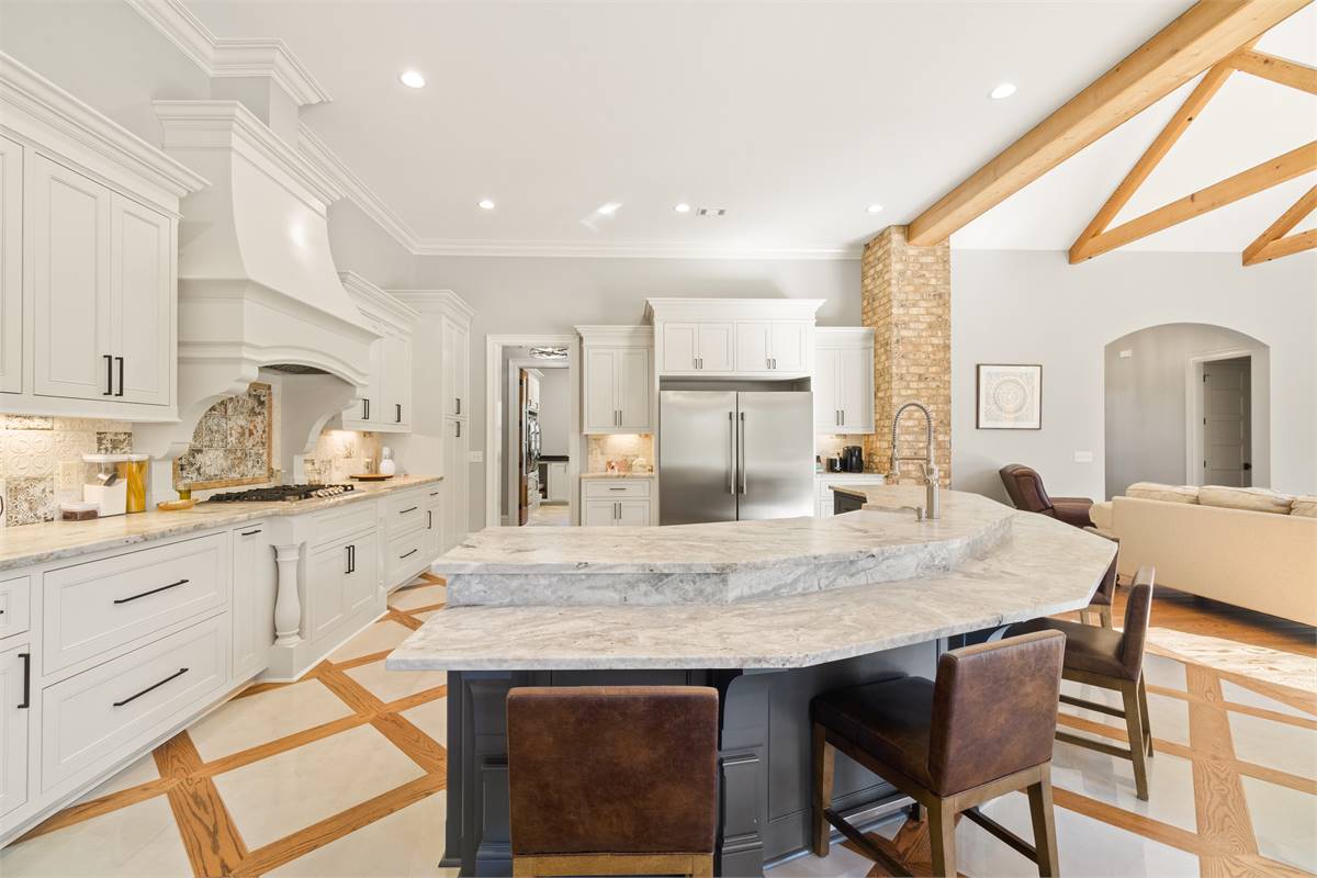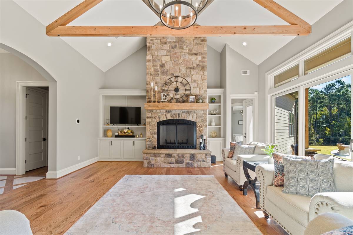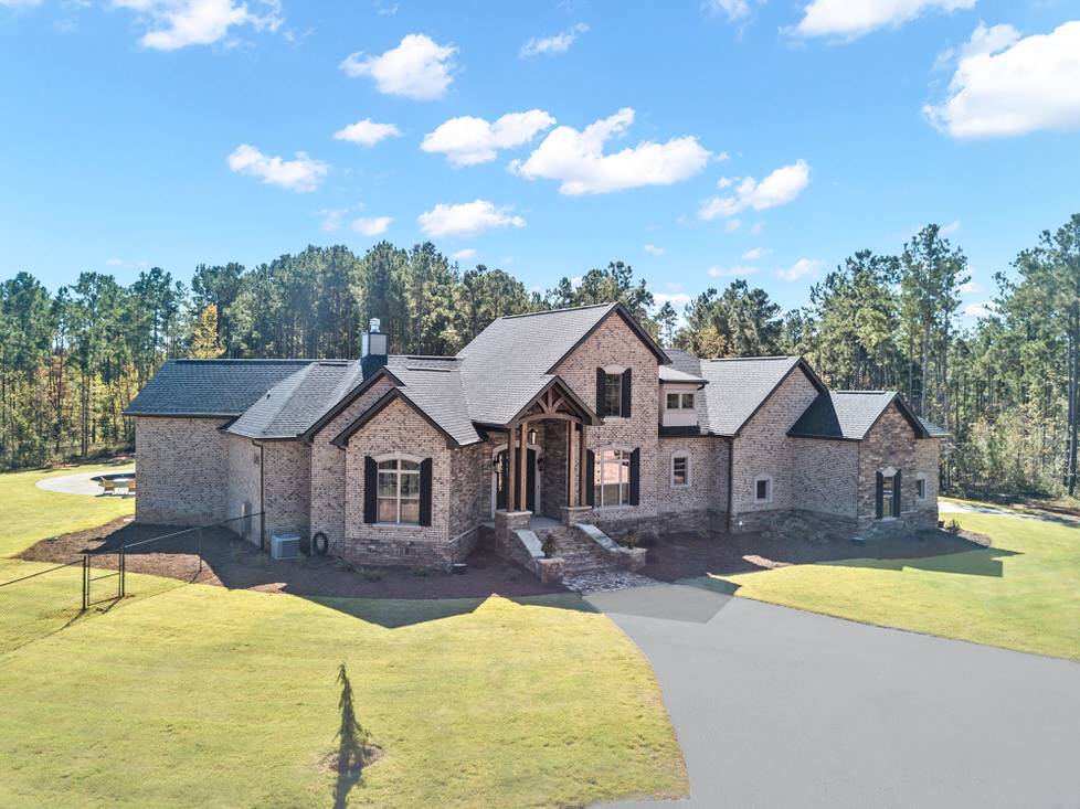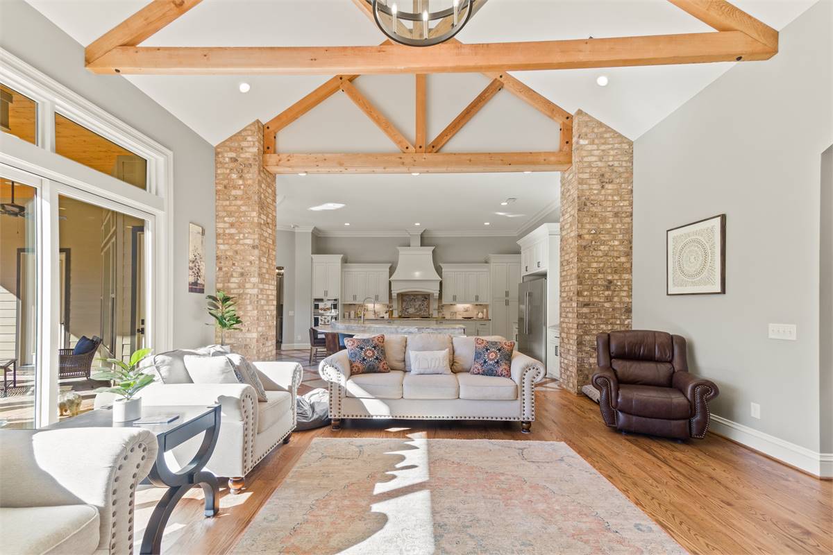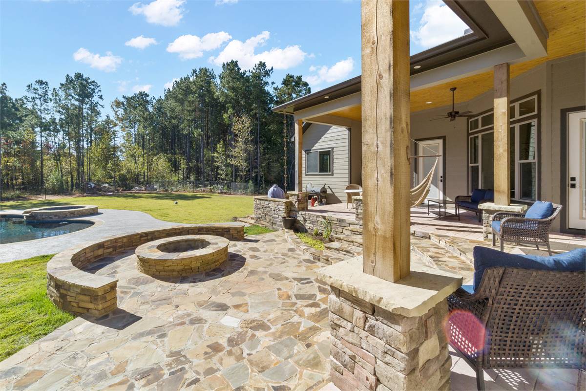 Customer Built European Inspired Craftsman Home View Interior & Exterior Customer Built New Home Tour! Front View, Customer Modified Customer Added Beautiful Freeform Pool & Hot Tub A Large Covered Rear Patio Perfect for Family Gatherings Designer’s Rendering of Front View Covered Front Entry with Stone and Craftsman Design Front Right Aerial View with Triple Garage Entry Rear View Featuring Rounded Stone Wall Around Pool Full Rear Aerial View Rear Outdoor Living Featuring Fire Pit Left Side View Designer’s Right Side Rendering Showing 3-Car Garage Rear Outdoor Living Aerial View Aerial Roof View Double Entry Front Door Leads to Foyer with Coffered Ceiling Vestibule Featuring Wine Cooler and Gorgeous Chandelier Kitchen with Buchanan Hardwood and Floor & Decor Tile Kitchen with Custom Hood and Backsplash Homeowner Selected Stainless Gas Cooktop Commercial Grade French Door Refrigerator A Large Kitchen Island Adds Extra Seating & Countertop Space Open Concept Design Seamlessly Connects Living Space Kitchen Featuring Kohler Pulldown Faucet and Farmhouse Sink Dining Area Adjacent to Kitchen – Great for Casual Dining Beautiful Pella Windows Allow Maximum Light Exposure Great Room with Built-Ins & Eldorado Stone Fireplace Great Room with Natural Wood Beams & Brick Columns Striking 12’ Vaulted Great Room Ceiling Adds Ambience Transom Windows Over Sliding Glass Doors Add Light Game and Card Room with Unique Ceiling Detail Game Room with Access to Hallway and Casual Dining Area Powder Bath Located by Game Room Primary Bedroom with Natural Timber & Dropped Ceiling Primary Ensuite Bath with Double Sink Vanity & Walk-in Shower Primary Bath Shower with Overhead Rain Shower Head Bedrooms 3 & 4 Jack and Jill Style Bathroom Spacious Bedroom 2 with Ensuite Bathroom Bedroom 3 with Access to Jack and Jill Bath Bedroom 4 with Access to Jack and Jill Bath Study with Upstairs Loft for Books Spiral Staircase to Upstairs Loft in Study Laundry Room with Pet Bed & Extra Storage for Seasonal Items Built in Georgia with Customer Preferred Pella Windows Rustic French Country with Craftsman Elements Vaulted Columned Front Porch with Double Door Entryway Patio Featuring Cultured Stone Country Ledgestone First Floor Plan
