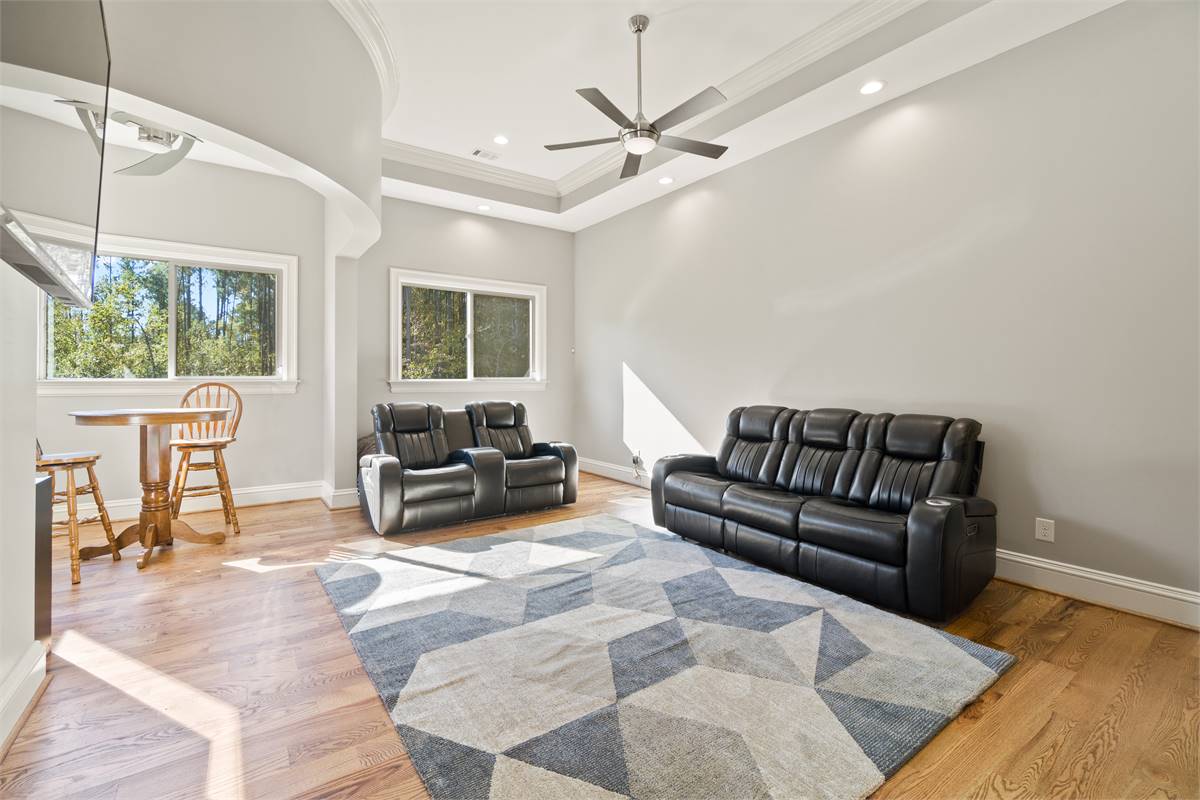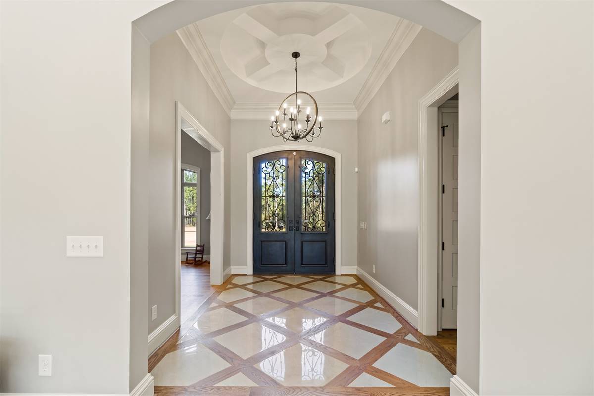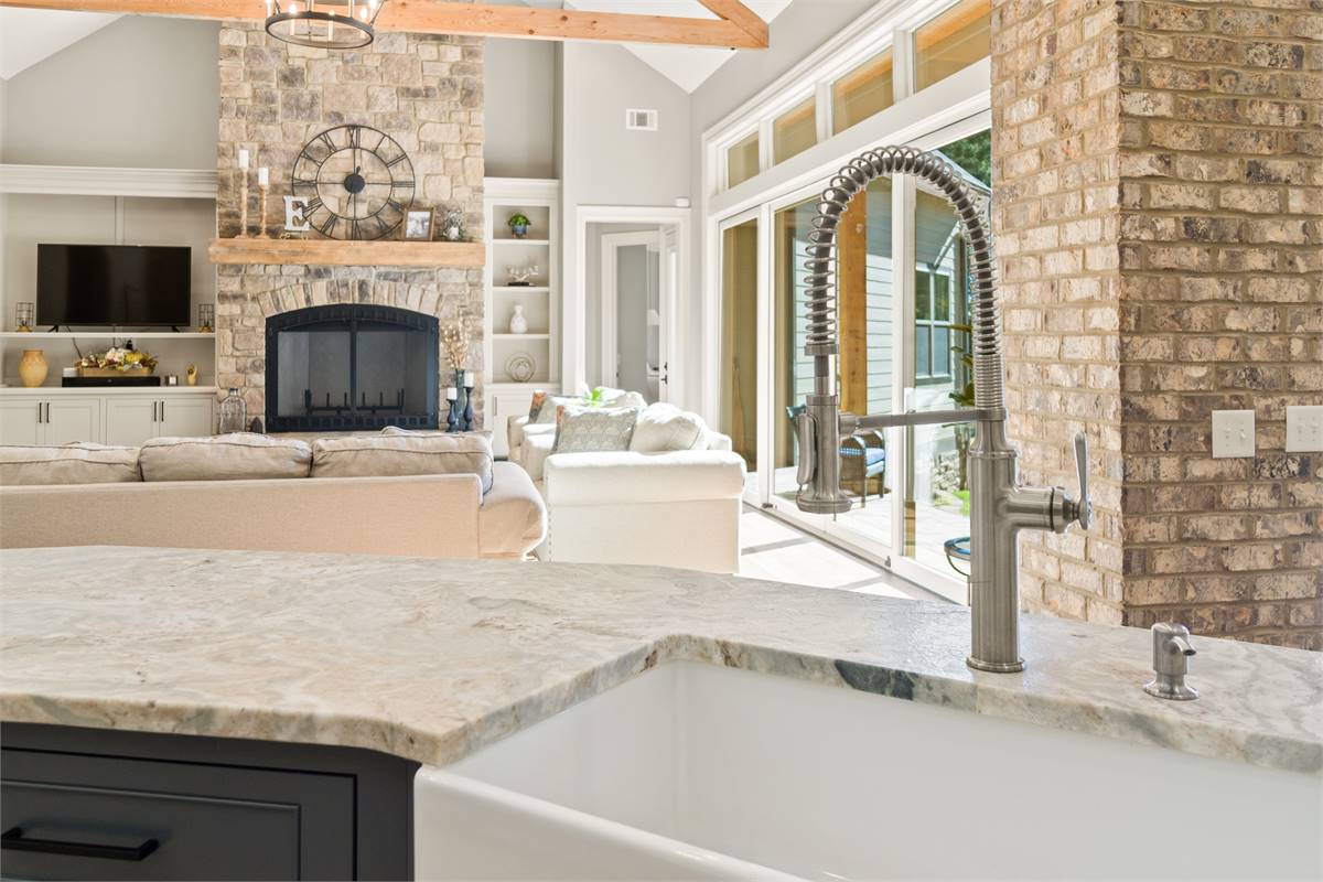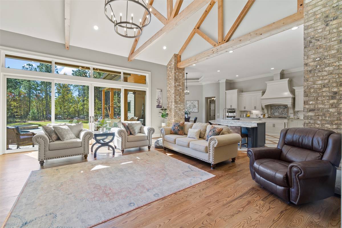 Customer Built European Inspired Craftsman Home View Interior & Exterior Customer Built New Home Tour! Front View, Customer Modified Customer Added Beautiful Freeform Pool & Hot Tub A Large Covered Rear Patio Perfect for Family Gatherings Designer’s Rendering of Front View Covered Front Entry with Stone and Craftsman Design Front Right Aerial View with Triple Garage Entry Rear View Featuring Rounded Stone Wall Around Pool Full Rear Aerial View Rear Outdoor Living Featuring Fire Pit Left Side View Designer’s Right Side Rendering Showing 3-Car Garage Rear Outdoor Living Aerial View Aerial Roof View Double Entry Front Door Leads to Foyer with Coffered Ceiling Vestibule Featuring Wine Cooler and Gorgeous Chandelier Kitchen with Buchanan Hardwood and Floor & Decor Tile Kitchen with Custom Hood and Backsplash Homeowner Selected Stainless Gas Cooktop Commercial Grade French Door Refrigerator A Large Kitchen Island Adds Extra Seating & Countertop Space Open Concept Design Seamlessly Connects Living Space Kitchen Featuring Kohler Pulldown Faucet and Farmhouse Sink Dining Area Adjacent to Kitchen – Great for Casual Dining Beautiful Pella Windows Allow Maximum Light Exposure Great Room with Built-Ins & Eldorado Stone Fireplace Great Room with Natural Wood Beams & Brick Columns Striking 12’ Vaulted Great Room Ceiling Adds Ambience Transom Windows Over Sliding Glass Doors Add Light Game and Card Room with Unique Ceiling Detail Game Room with Access to Hallway and Casual Dining Area Powder Bath Located by Game Room Primary Bedroom with Natural Timber & Dropped Ceiling Primary Ensuite Bath with Double Sink Vanity & Walk-in Shower Primary Bath Shower with Overhead Rain Shower Head Bedrooms 3 & 4 Jack and Jill Style Bathroom Spacious Bedroom 2 with Ensuite Bathroom Bedroom 3 with Access to Jack and Jill Bath Bedroom 4 with Access to Jack and Jill Bath Study with Upstairs Loft for Books Spiral Staircase to Upstairs Loft in Study Laundry Room with Pet Bed & Extra Storage for Seasonal Items Built in Georgia with Customer Preferred Pella Windows Rustic French Country with Craftsman Elements Vaulted Columned Front Porch with Double Door Entryway Patio Featuring Cultured Stone Country Ledgestone First Floor Plan
