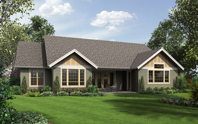 A tasteful façade adorns this Craftsman one-story design. Sidelights brighten the welcoming foyer, complete with a coat closet. A handy powder room allows visitors to freshen up after a long drive. If you like entertaining, you'll appreciate the way the island kitchen flows into the spacious living room. A quiet office would also be great for reading or artwork. A cathedral ceiling soars above the master bedroom. A sit-down shower is a nice feature in the master bath.