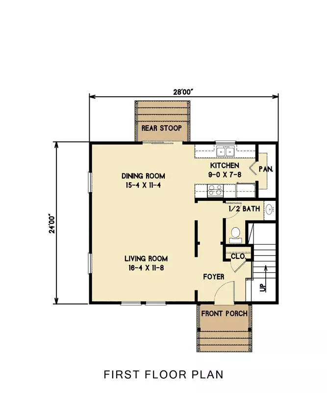 The Norfolk is an historical two-story house plan designed for an urban infill site ideal for a shallow lot. It was originally created for a property in Norfolk, Virginia. The 28-foot house width leaves adequate room for access to a detached garage to the left or right of the house. The style of this home design is characterized by pattern book plans of the early 1900's such as those published by Sears and Roebuck. At that time a homeowner could order a kit of pre-cut lumber and all of the other materials and finishes to complete the construction of a complete new home.