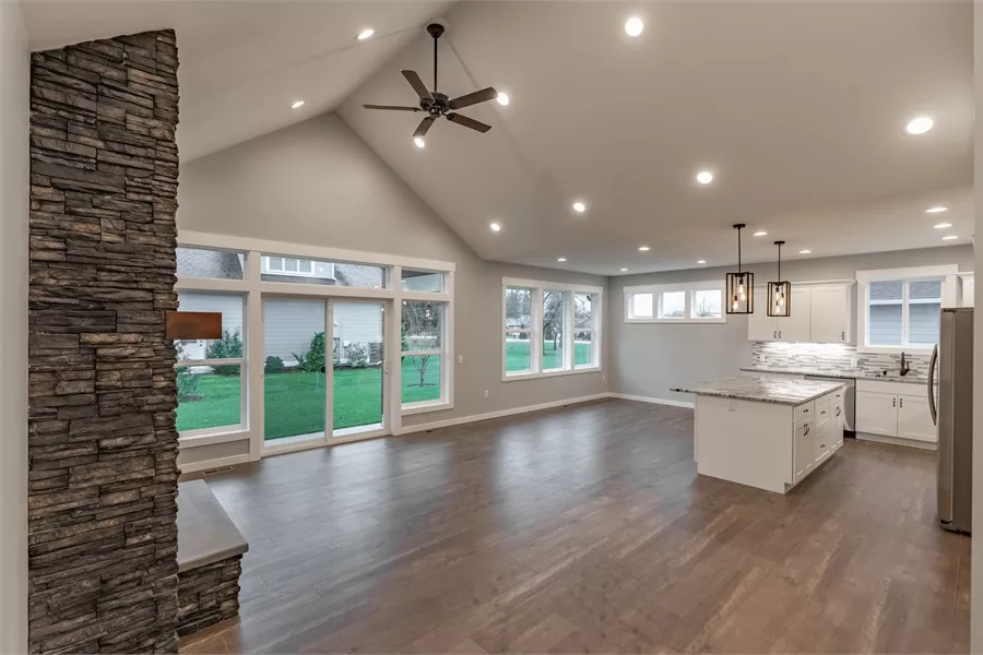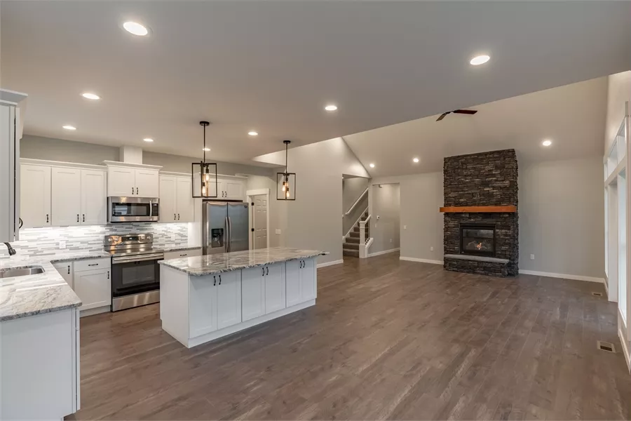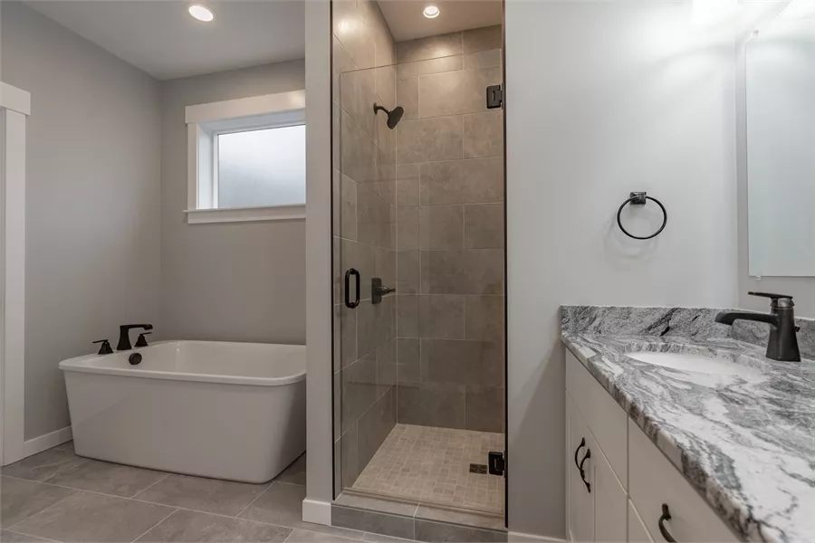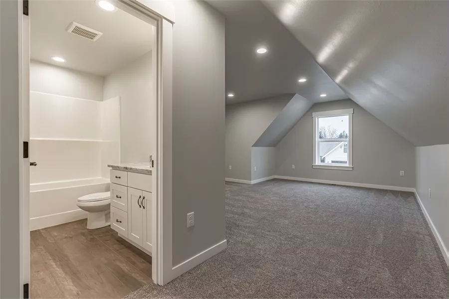 This 4-bedroom, 2,283 square foot Craftsman house plan features an open floor plan, emulating classic styling!  The beautiful dining room space is open to the large kitchen and great room, which has a vaulted ceiling and a fireplace. The state-of-the-art kitchen has views to the rear covered patio and features a large island. The master suite is located on the main floor and is complete with separate tub and shower, dual vanity, and large walk-in closet.  You’ll also find two additional bedrooms and a laundry room conveniently located next to the entry from the two-car garage. An upstairs bonus space is provided that would be perfect for a guest suite or game room.