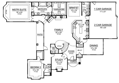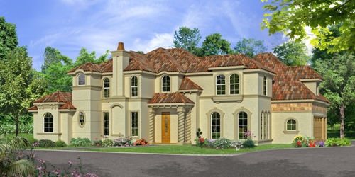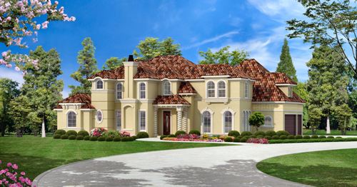 This Mediterranean luxury house plan brings your dreams to the door step. The two story foyer opens to a spiral staircase and bar/wine room, and is flanked by the quiet study with warming fireplace and the elegant dining room. Access into the pantry and butlery allows for ease in serving. The family gathering area consists of the breakfast area, kitchen and family room. Built-ins, a warming fireplace, patio access and large banks of windows adorn the family room. The luxurious master suite boasts a tray ceiling; the private bath flaunts his and hers sinks, a separate shower, tub and large wardrobe. A family bedroom sits in the quiet front corner of this house plan and offers a walk-in closet and full bath. Upstairs, two family bedrooms with walk-in closets and full baths share space with a game room and bonus room. Enjoy balcony views of the landscaped yard off the game room.