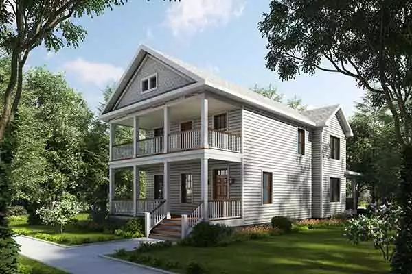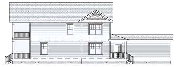 Oak is a durable wood choice for interior finishes such as flooring. This model plan is as plain and time-tested as oak. It is designed as a choice for common sense livability and construction cost efficiency. One special feature is its two-story front porch where the Master Bedroom has exclusive sitting space on the second level. Such a porch is ideal for a homeowner that enjoys watching the street activity of the surrounding neighborhood or a special view at a distance. The children?s bedrooms are tucked safely toward the rear of the house. There is a spacious central stair landing at the top of the stair giving each bedroom door an identity for the occupant. This house as a rear- loading attached garage for alley access to a back porch.