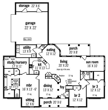 This enchanting 3 bedroom plan includes space convenient to the master suite that can be used for a study, nursery or what ever the owners may desire. The master suite is luxurious with a sitting area and an adjoining bath fit for a king. The master bath amenities include his and her vanities and walk-in closets, a raised roman style tub and a separate shower. The living room and kitchen area is open and bright with an adjacent sunroom that opens to the rear-covered porch. The living room ceiling is sloped to a height of 12 feet. Other living room amenities include a wood-burning fireplace and built in entertainment center. Space planning is most efficient with almost no hallway or wasted space. The gracious dining area includes built in china with a handy pantry nearby. This home is sure to please even the most demanding buyers.
