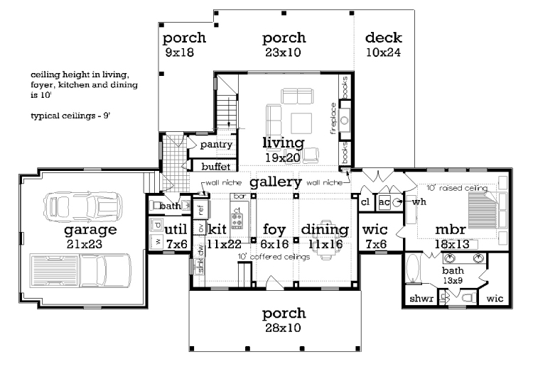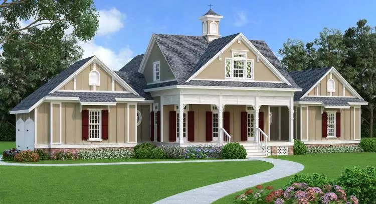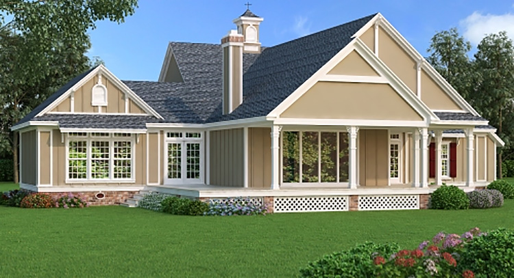 This mid-size affordable home is specifically designed for wide but shallow building sites. The bonus of such a design is the grand curb appeal which gives the appearance of a much larger home. This home is a super energy saving design featuring 2x6 exterior walls with R19 insulation. Designed for outdoor living and entertainment, both the front and rear porch extend beyond the living area in order to capture prevailing breezes. The kitchen area has all of the built in amenities found in luxury homes plus it has a large island with a raised eating bar. Also included is a large buffet serving area with plenty of built-ins for china and silver. A nearby walk-in butlers pantry offers up a ton of food storage as well as other kitchen devices. 3' wide interior and exterior doors make this home accessible for those with access issues and there is a great roll in shower in the mbr.