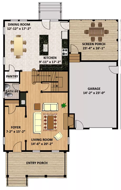 A narrow footprint with a wonderfully efficient design means that this 2-story Cape Cod home is full of functional surprises. 2,745 square feet joins with 4 bedrooms, 3.5 bathrooms, great for new and growing families. Other great features such as the 2-story front porch and an attached garage mean that this home is extremely convenient throughout. A large living room flows into a comfortable dining room and island kitchen before exiting through the back, on to the large screened porch. Upstairs is home to some great spaces, including the master suite alongside the auxiliary bedrooms, as well as an impressive bonus room, perfect for entertaining and total enjoyment. You’ll especially love the private balcony that the master suite has to offer, creating a relaxing and private getaway.