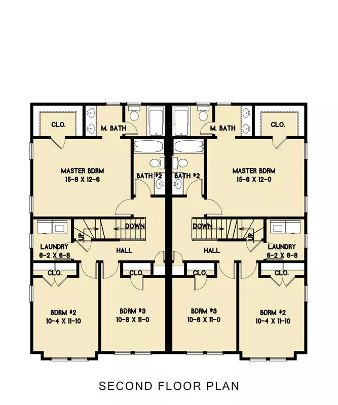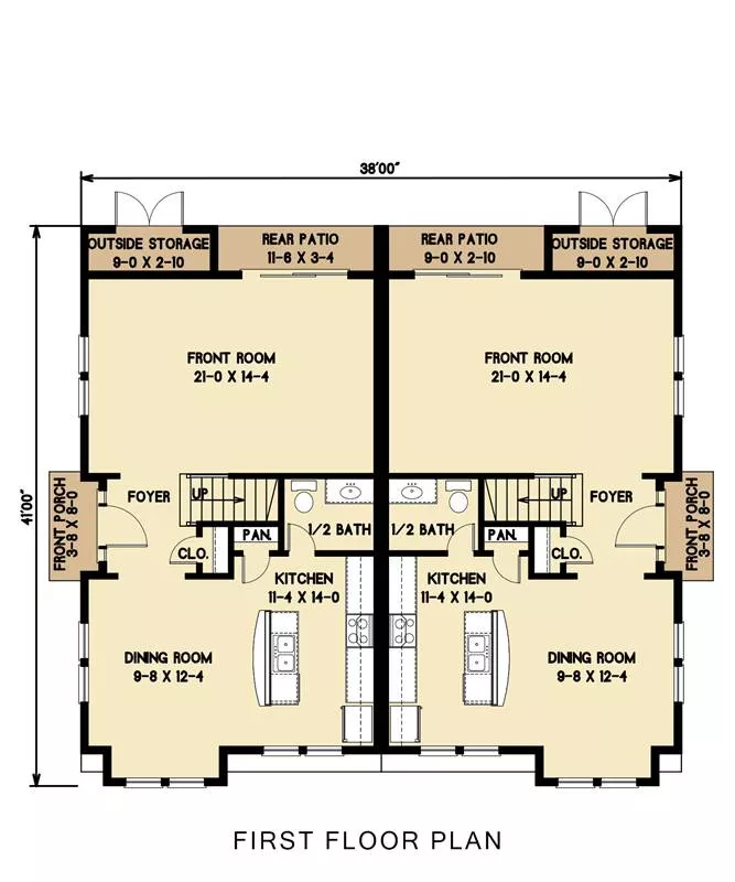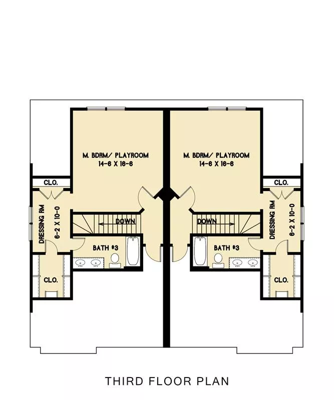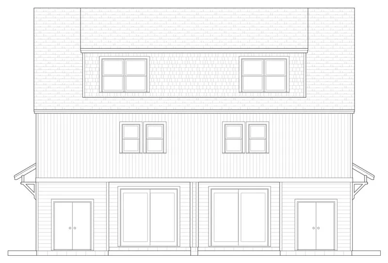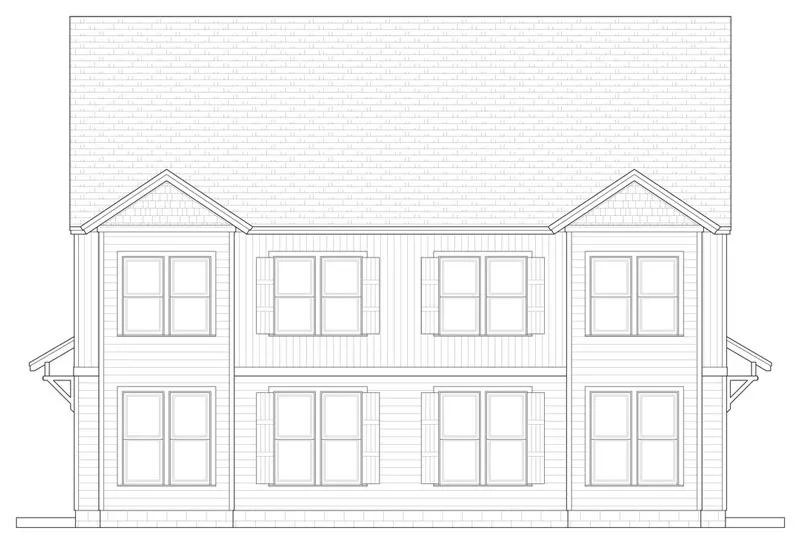 This cottage design is a duplex with four bedrooms in each unit. The welcoming foyer includes a handy coat closet. Enjoy some laughter in the ample great room; sliding glass doors allow you to step outside for some fresh air. The up-to-date kitchen helps you to prepare any meal in style. The dining room is bright and cheery for family suppers or special feasts. A nearby powder room is a nice extra. The second level contains three bedrooms. A fourth bedroom is a possibility on the third floor.