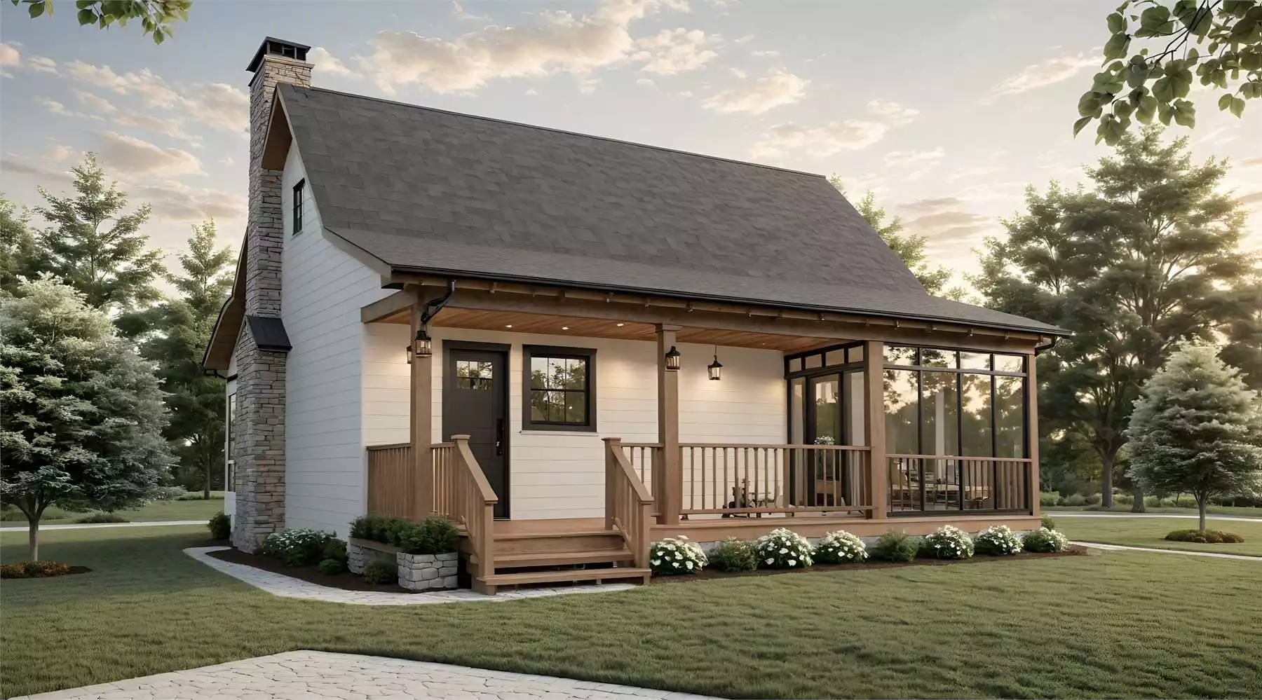 Lilac Corner is a charming 600 square foot farmhouse-style cottage that proves cozy living can still feel luxurious. This one-bedroom, one-bathroom layout is ideal for empty nesters, a weekend getaway, or even as an in-law suite. A full-width covered front porch sets the tone for relaxed country living, welcoming you into a warm living room complete with a cozy fireplace. The separate kitchen includes a raised bar and direct access to the rear porch, perfect for enjoying morning coffee outdoors. A flexible bonus room offers space for a home office, craft nook, or a compact guest area. The bedroom connects to the full bathroom through dual access points and features a private covered or screened-in porch—your own peaceful retreat just steps from bed.