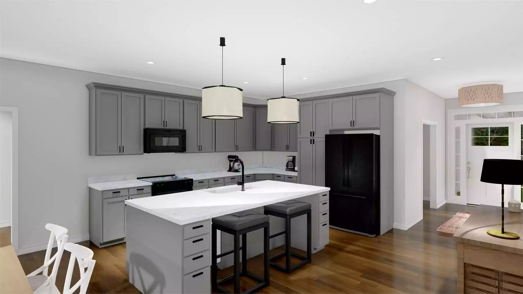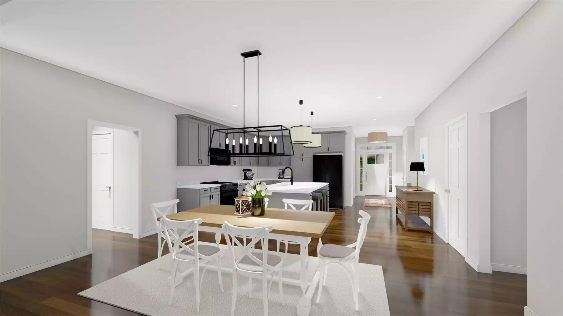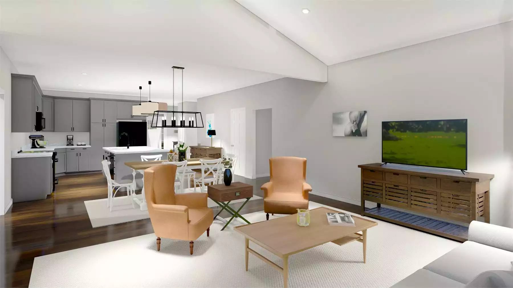 Welcome to Rowan Ridge, a warm and inviting craftsman-style ranch offering 1,894 square feet of well-balanced living. This single-story home blends open-concept comfort with functional spaces, starting with a welcoming front porch and a dedicated home office or den just off the entry. The heart of the home includes an L-shaped kitchen with a spacious central island, a bright dining area, and a vaulted family room with direct access to the rear deck—perfect for indoor-outdoor living. The split-bedroom layout ensures privacy, with the primary suite tucked away on the left side featuring a generous walk-in closet and a luxurious ensuite with a double vanity, soaking tub, and separate shower. Two additional bedrooms share a full bathroom on the opposite wing. A mudroom off the 2-car garage adds everyday convenience, and an optional basement can double your square footage, making this plan ideal for families looking to grow or entertain with ease.