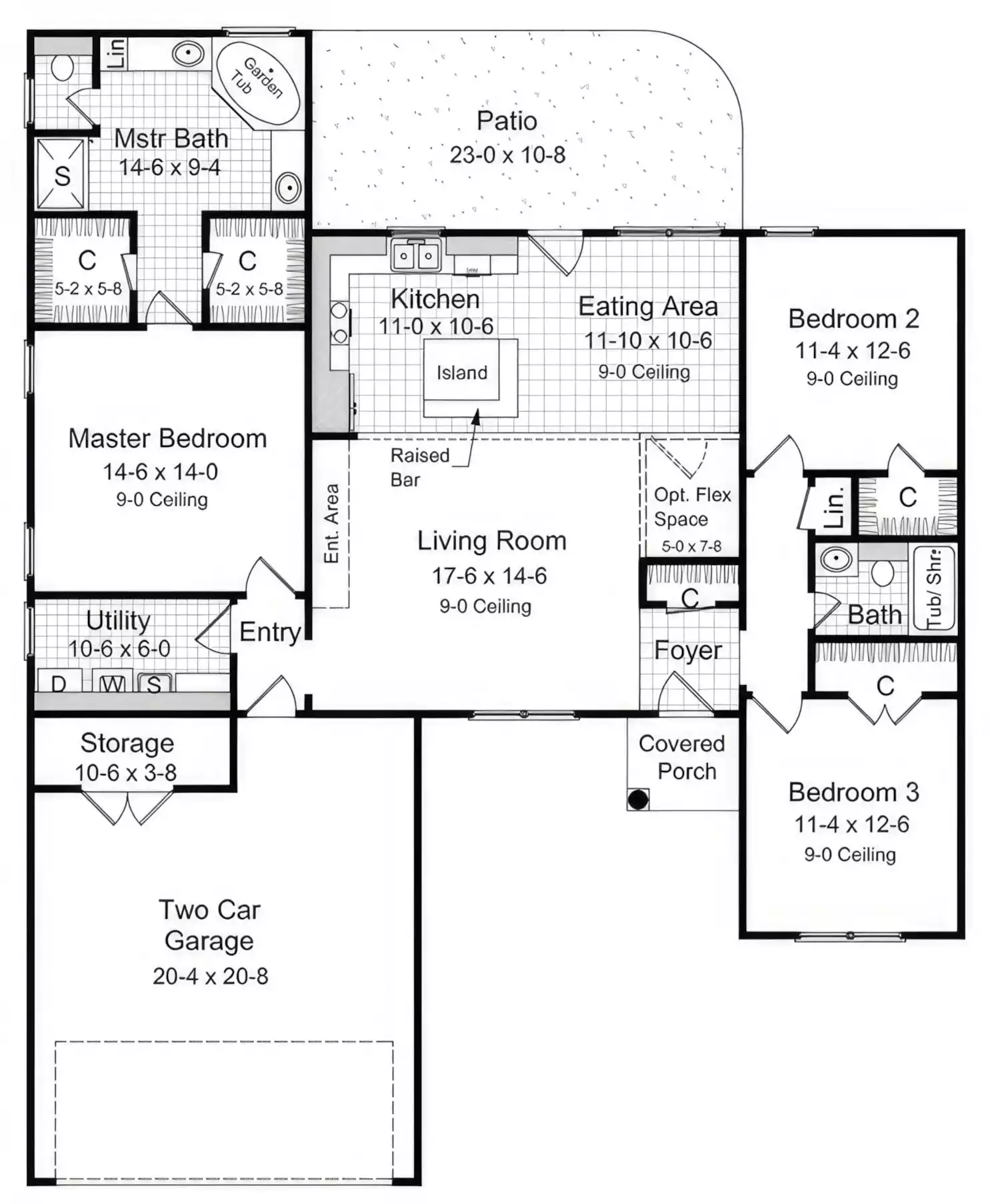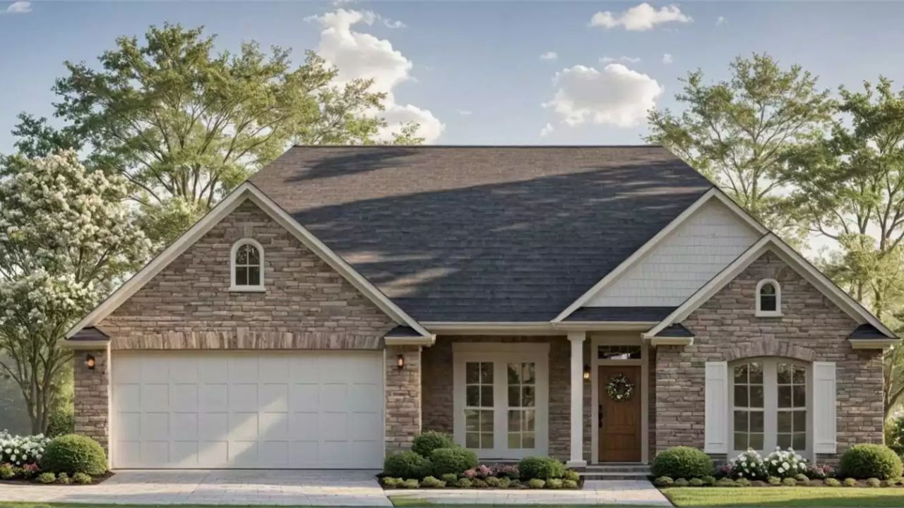 Cleo Valley offers timeless curb appeal and a warm, welcoming layout designed for everyday comfort. Stone accents, shutters, and a covered front porch set a charming first impression before leading into a bright living room that connects easily to the kitchen and dining area. The kitchen features a center island with a raised bar for casual seating, along with ample workspace for meal prep and hosting. A large rear patio extends the living space outdoors for relaxed evenings or weekend gatherings. The private master suite includes dual walk-in closets and a luxurious bath with a garden tub, separate shower, and double vanities. Two additional bedrooms share a full hall bath on the opposite side of the home, offering comfort and flexibility for guests or family. A two-car garage, generous laundry room, and convenient storage complete this functional and inviting home.