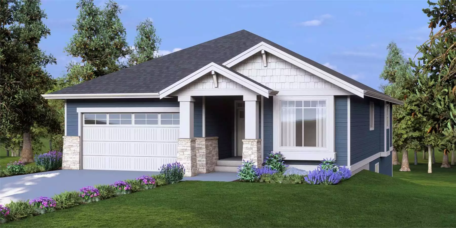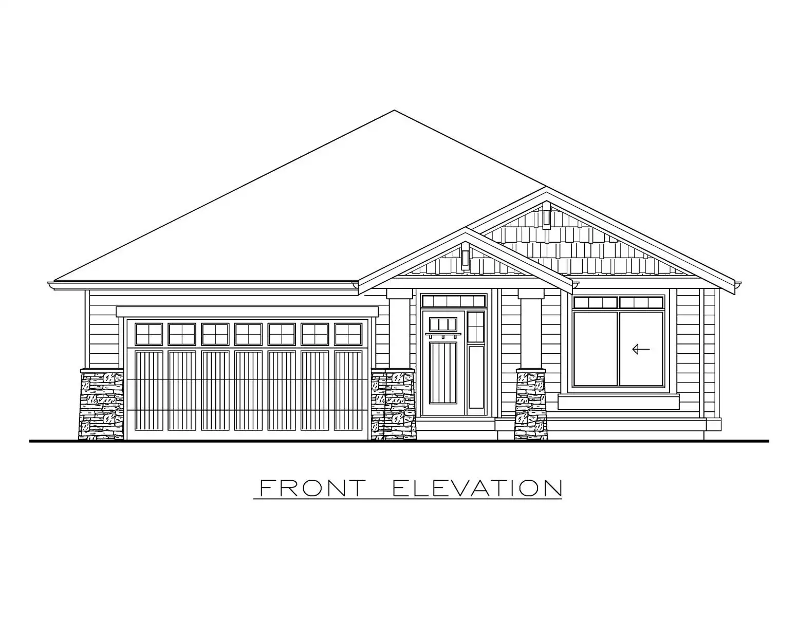 Estelle Heights is a charming 1,646-square-foot home that combines Craftsman-inspired curb appeal with an efficient and family-friendly layout. The covered entry opens into a welcoming foyer with access to an unfinished basement, perfect for future expansion, storage, or a secondary suite. The open-concept great room includes a cozy gas fireplace and sliding glass doors that lead to a covered deck—ideal for outdoor dining and year-round enjoyment. The adjoining dining area overlooks the backyard, while the well-designed kitchen features a work island with double sinks, a walk-in pantry, and an efficient L-shaped layout for easy meal prep. Off the kitchen, a laundry and mudroom with garage access add everyday practicality. The private master suite includes a luxurious ensuite with a soaker tub in a bayed-out niche, separate shower, and dual vanities, along with a spacious walk-in closet. Two secondary bedrooms share a full bath, one featuring a built-in desk and the other an oversized window sill for added charm. Blending comfort, flexibility, and timeless detailing, Estelle Heights is designed to grow with your family and lifestyle.