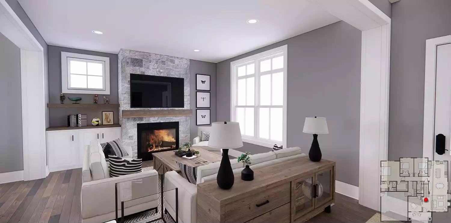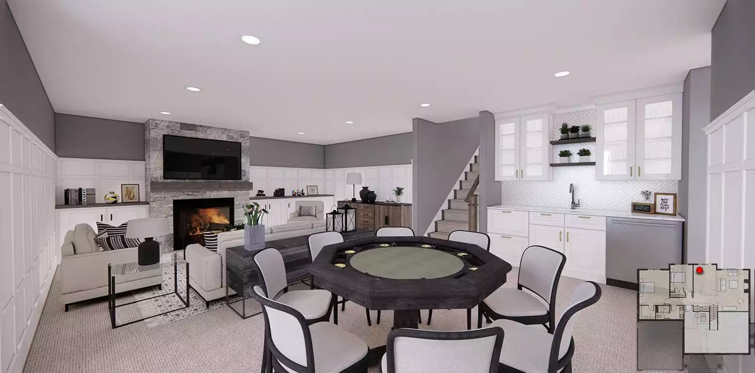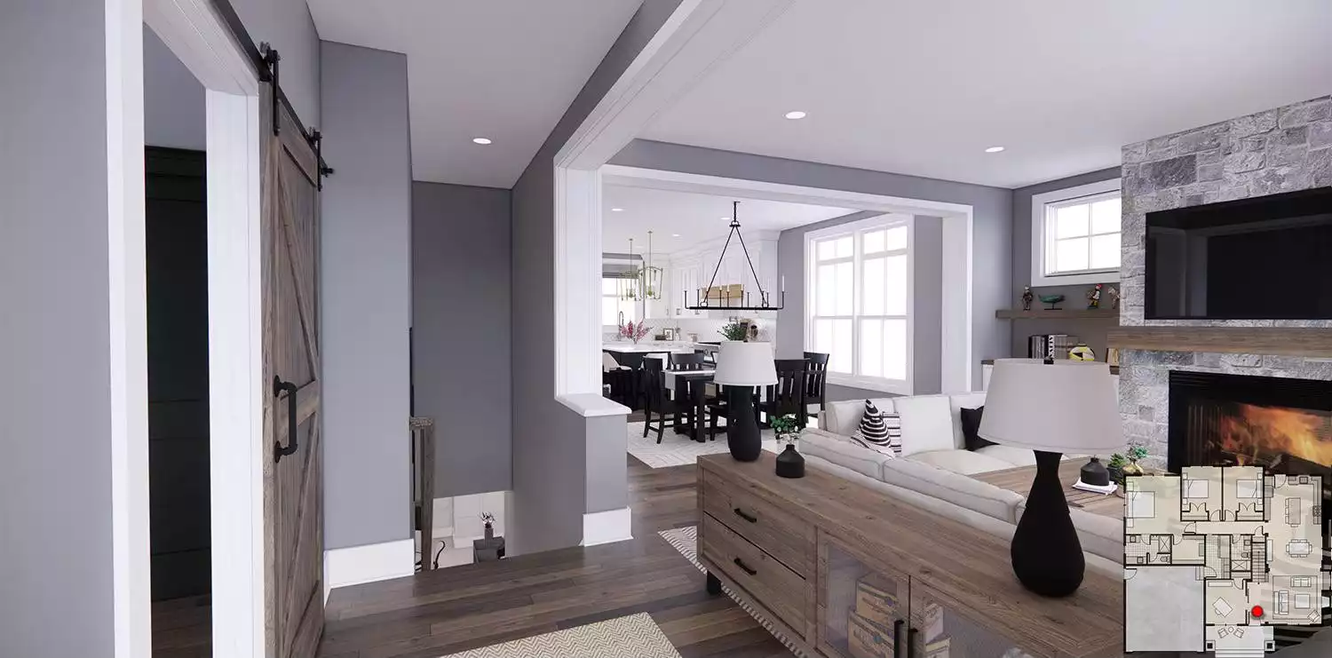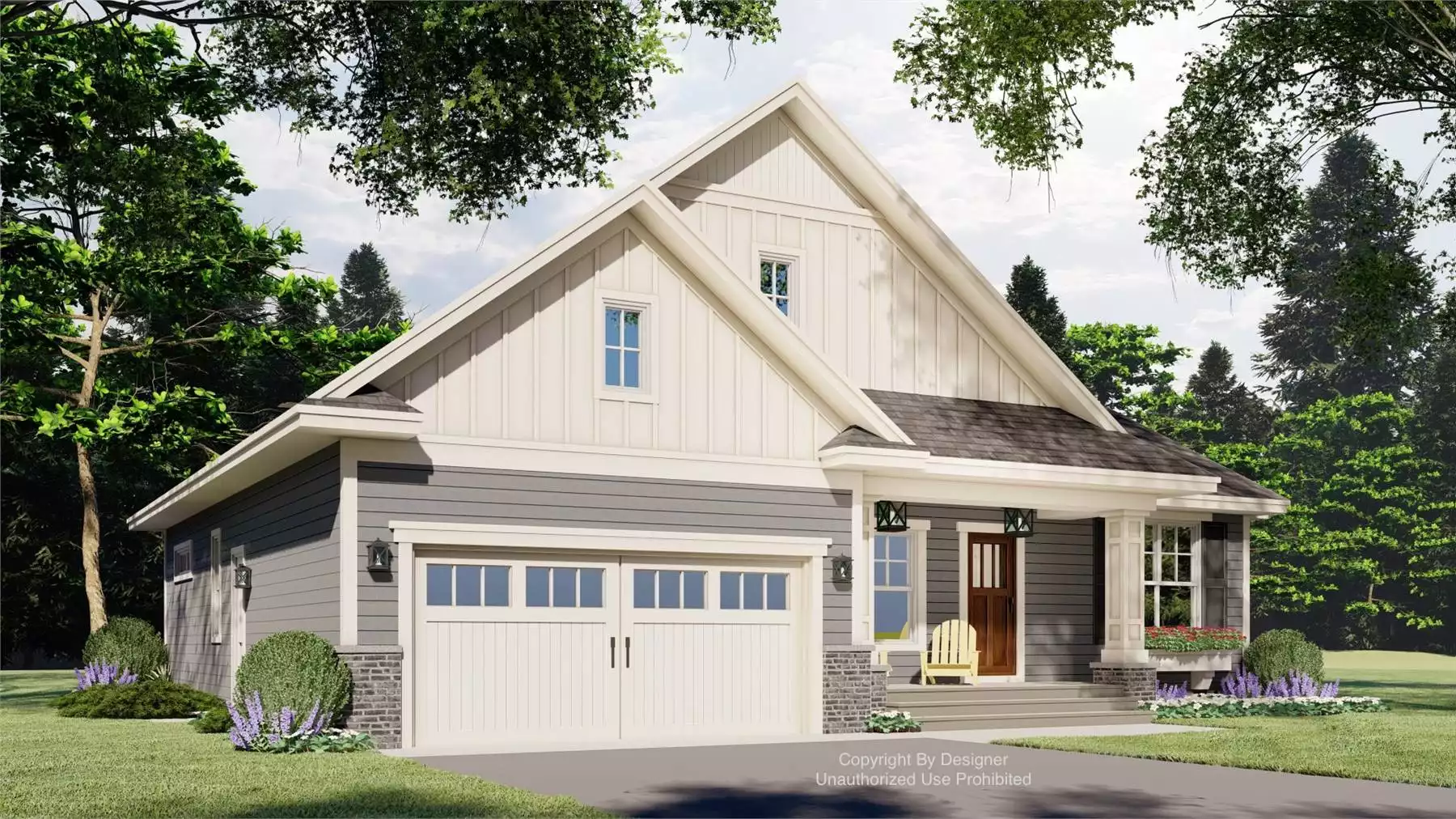 Greenview is a welcoming 3-bedroom, 2-bath Traditional-style home offering 1,673 square feet of thoughtful design, brought to life with a warm blend of wood and brick accents and a charming front porch. Inside, the open-concept living area connects the great room—complete with fireplace and built-ins—to a bright dining space and a kitchen with a large island for four, ample cabinetry, and a generous walk-in pantry. The private primary suite includes an airy bedroom with multiple windows, a spacious bath with dual vanities, step-in shower, private toilet, and a walk-in closet. Additional highlights include an office with sliding barn doors, a mud/laundry room with garage access, and an optional 1,065 square foot lower level featuring two more bedrooms, a full bath, a large rec room with fireplace, wet bar, and plenty of storage.