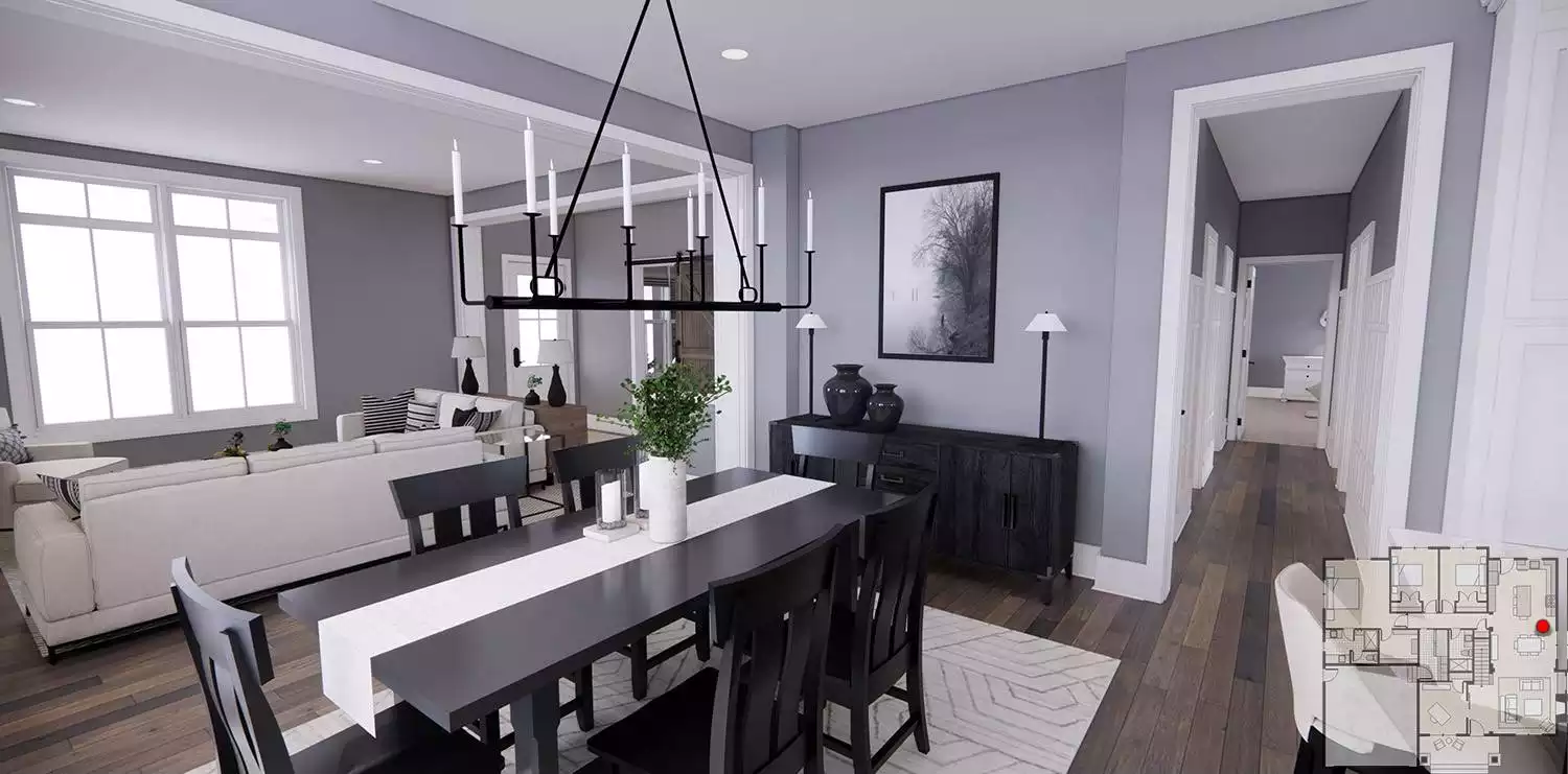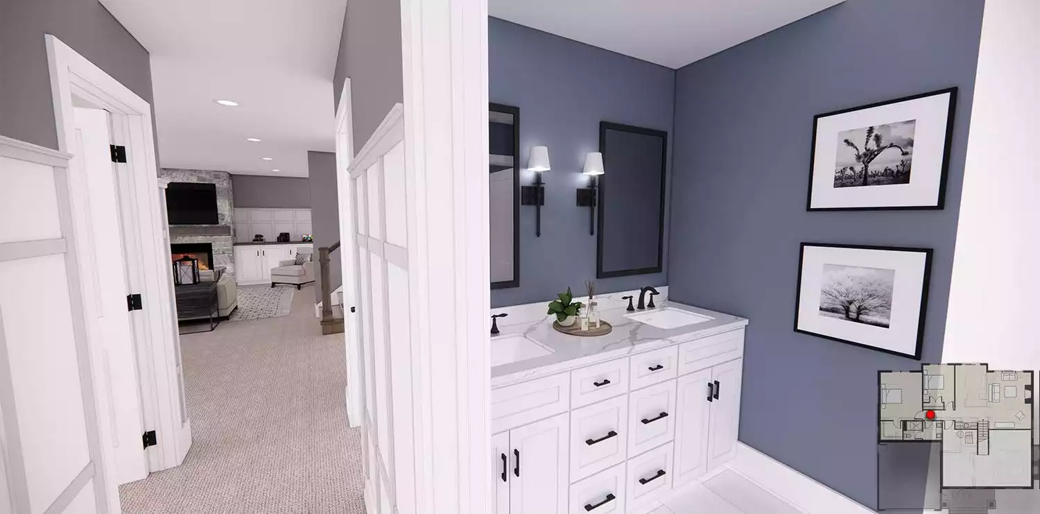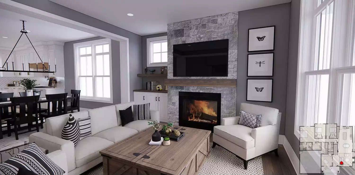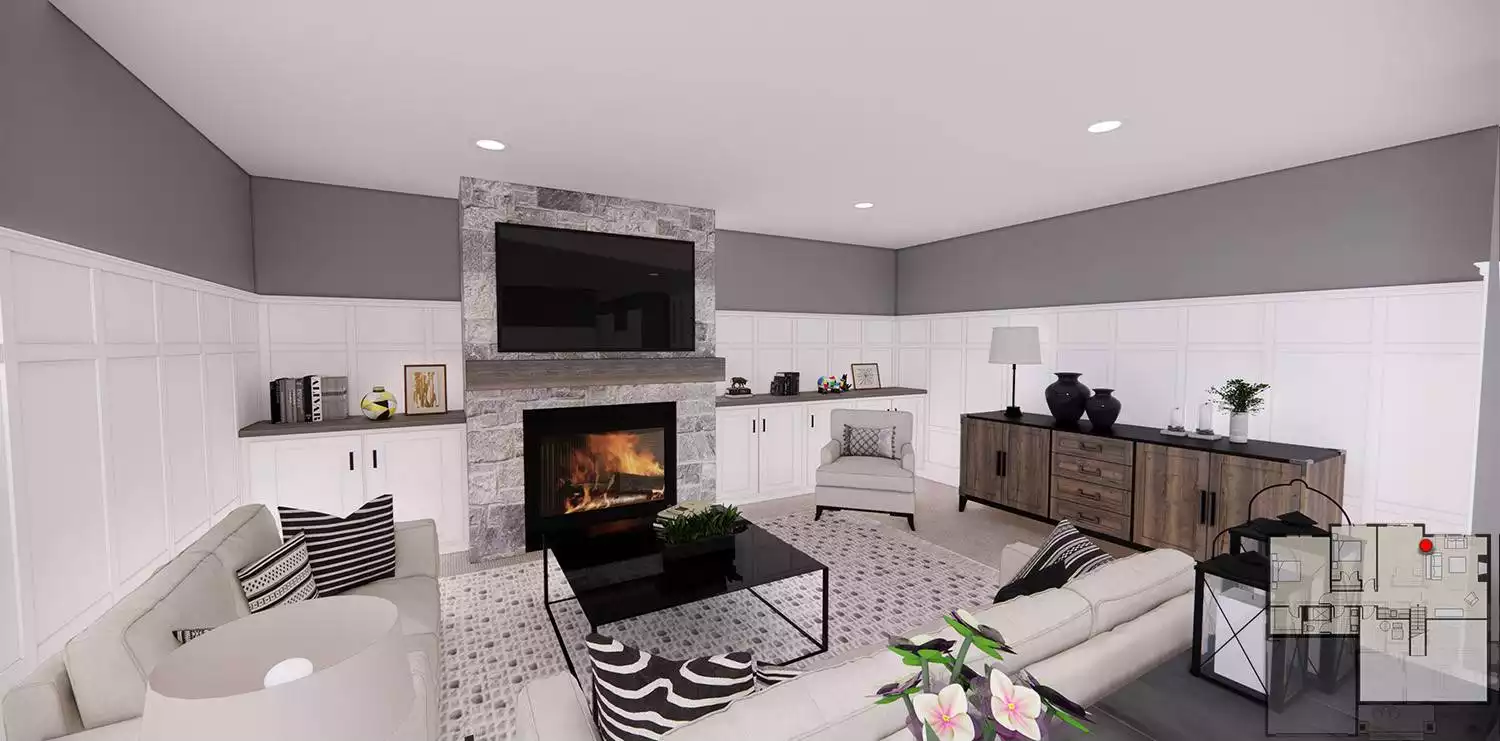 Greenview is a welcoming 3-bedroom, 2-bath Traditional-style home offering 1,673 square feet of thoughtful design, brought to life with a warm blend of wood and brick accents and a charming front porch. Inside, the open-concept living area connects the great room—complete with fireplace and built-ins—to a bright dining space and a kitchen with a large island for four, ample cabinetry, and a generous walk-in pantry. The private primary suite includes an airy bedroom with multiple windows, a spacious bath with dual vanities, step-in shower, private toilet, and a walk-in closet. Additional highlights include an office with sliding barn doors, a mud/laundry room with garage access, and an optional 1,065 square foot lower level featuring two more bedrooms, a full bath, a large rec room with fireplace, wet bar, and plenty of storage.