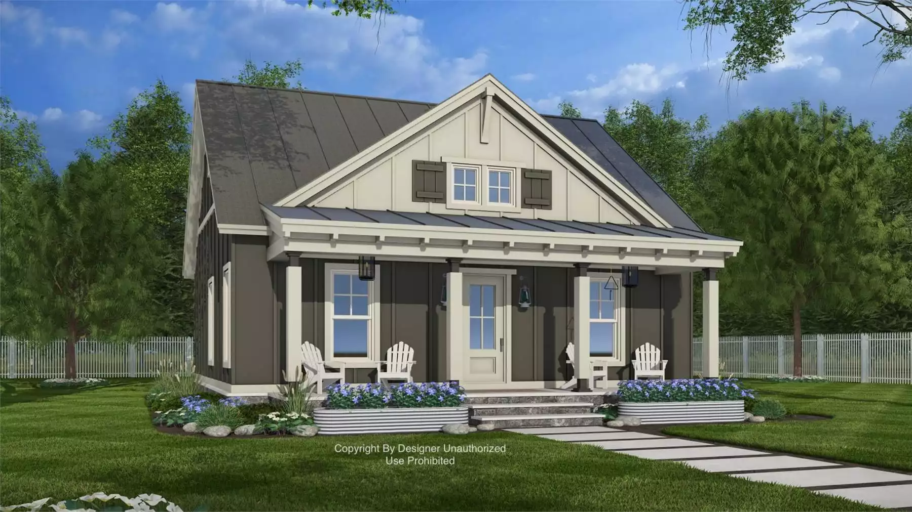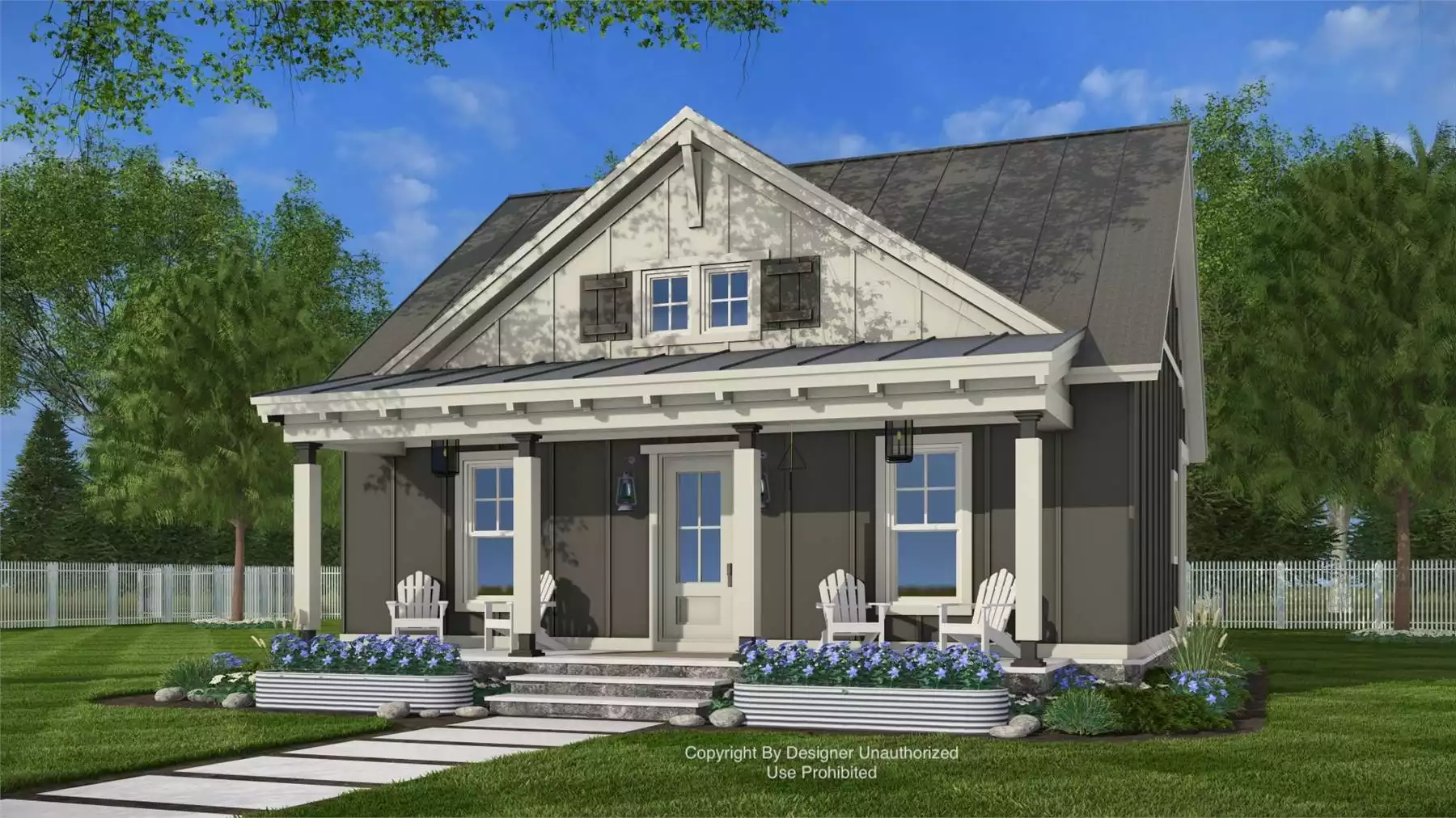 Avery Heights is a charming Craftsman home that combines timeless character with modern efficiency. The open floor plan connects the living, dining, and kitchen areas, where a vaulted ceiling adds volume and natural light, making the space feel bright and welcoming. The kitchen’s central island provides a versatile hub for meal prep, casual dining, and conversation, perfectly suiting today’s lifestyle. Toward the back of the home, a well-planned entryway enhances convenience with a half bath, washer and dryer, and utility space, all tucked neatly away to keep the main living areas uncluttered. Outdoor living is embraced with a comfortable rear porch, offering a peaceful spot to unwind. The bedroom retreat sits near a full bath and includes built-in shelving and a linen closet, balancing comfort with smart storage. Ideal as a full-time residence, guest home, or retreat, Avery Heights reflects Craftsman quality in every thoughtful detail.