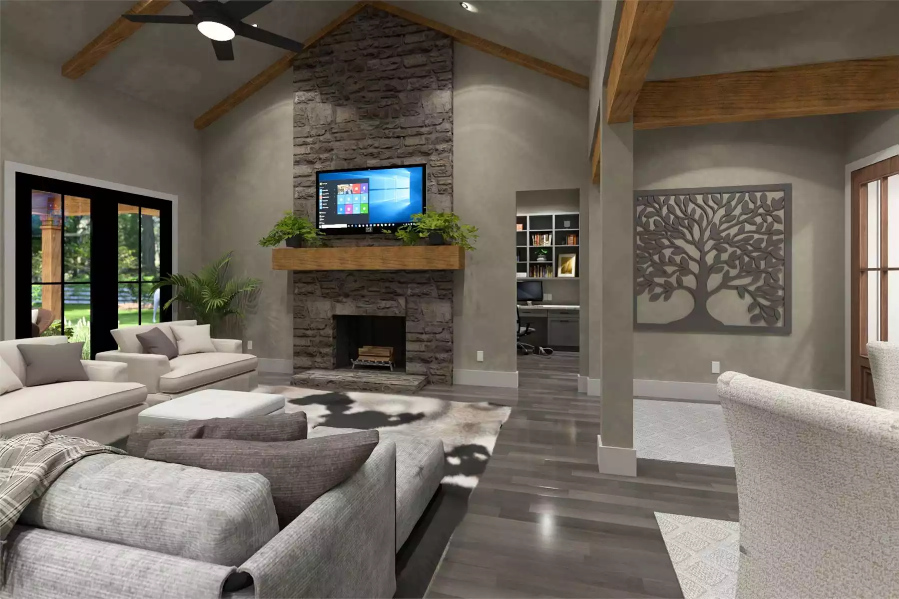 Designed with modern living in mind, Andersonville also includes a spacious back porch with a built-in BBQ kitchen, a garage with a workbench and storage room, and an upstairs bonus room for extra flexibility. Whether you're looking for a family-friendly house plan or a stylish one-story home with bonus space, Andersonville delivers the perfect combination of beauty and function.