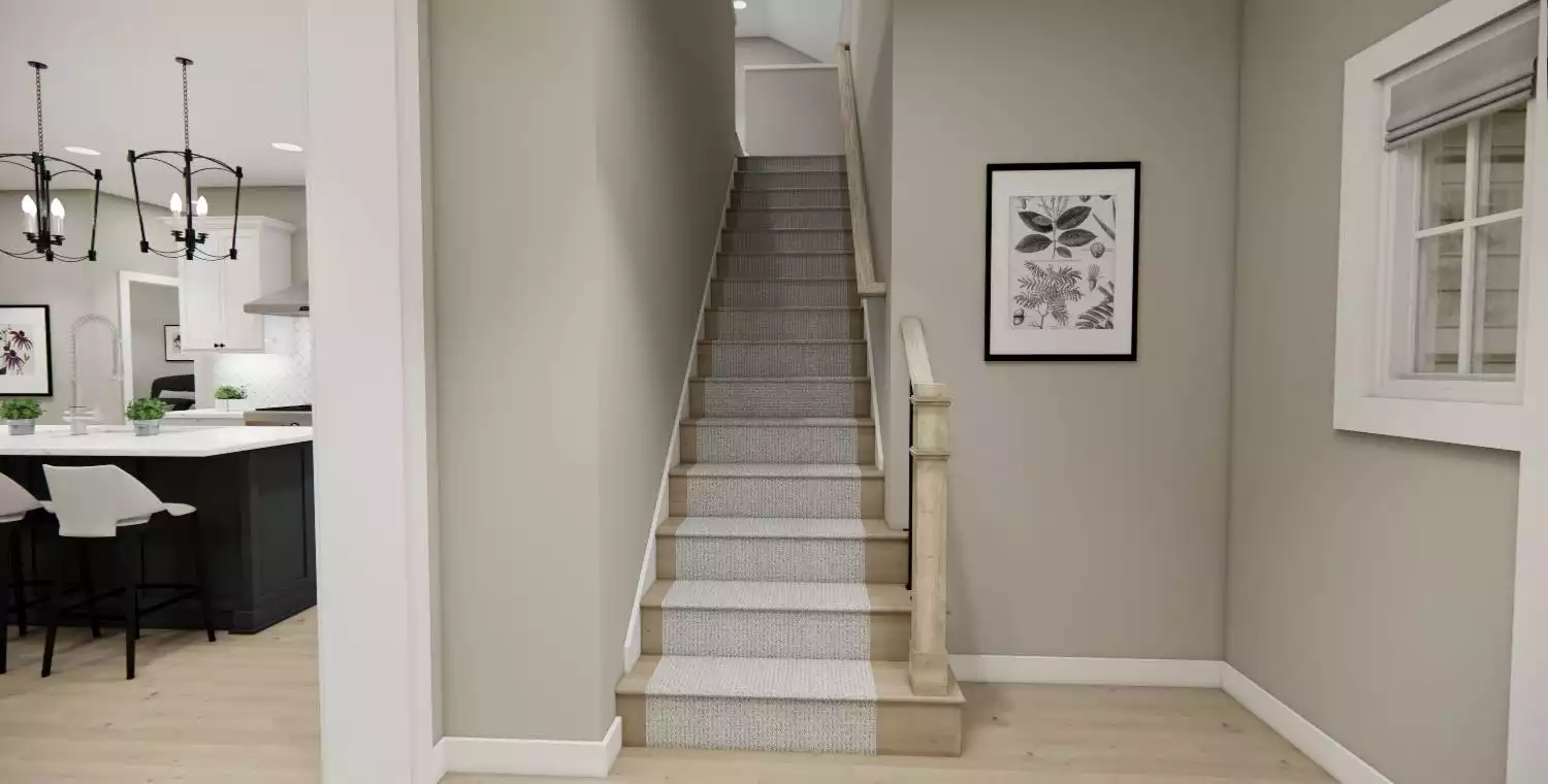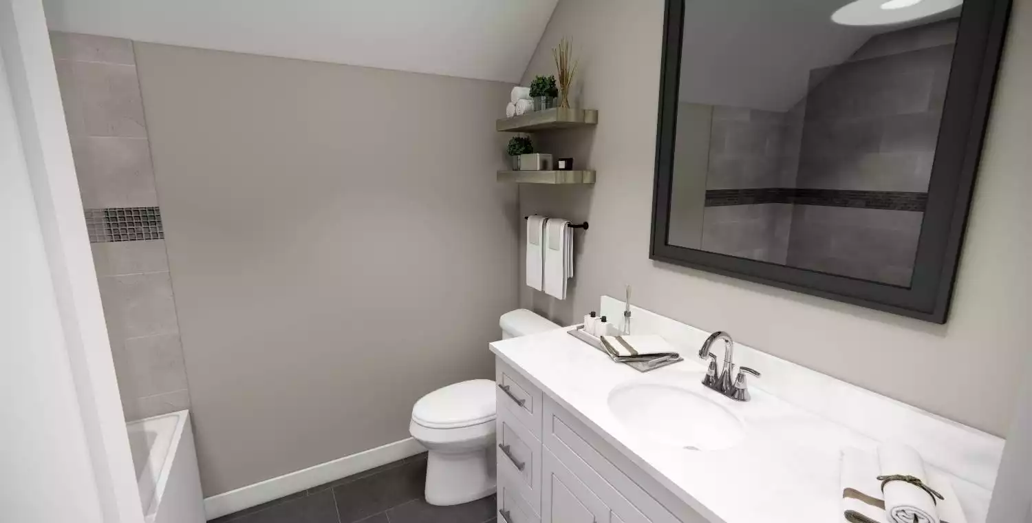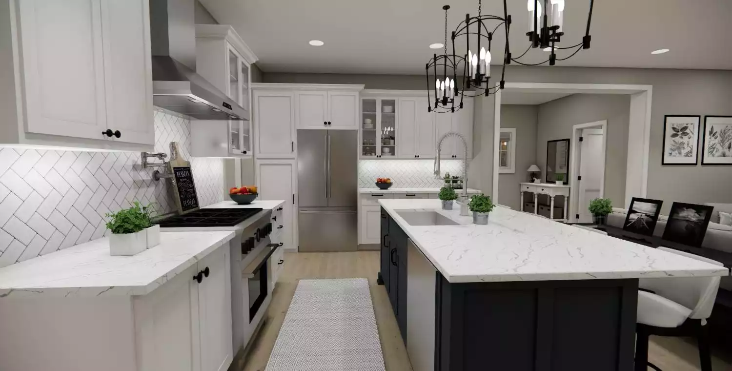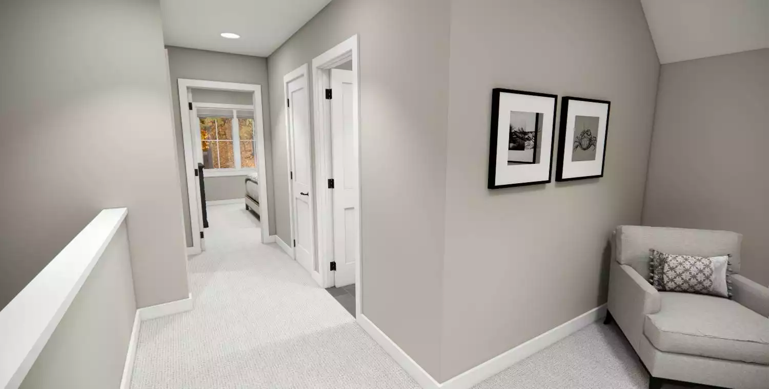Welcome to this beautifully crafted two-story Modern Farmhouse that balances timeless style with modern functionality. Offering 3 bedrooms and 2.5 bathrooms, the main floor showcases an open-concept design beginning with a welcoming front porch and a bright foyer with 9-foot ceilings. A large 8-foot kitchen island anchors the heart of the home, connecting seamlessly to the dining area and cozy great room with a fireplace. The private main-level primary suite includes a luxurious en-suite with double vanities, soaking tub, and walk-in shower. Upstairs, two additional bedrooms share a full bath and surround a spacious loft ideal for a media room or play area. A mudroom with laundry sits just off the two-car garage, and thoughtful storage is found throughout. This inviting plan is perfect for families and remote professionals alike.
