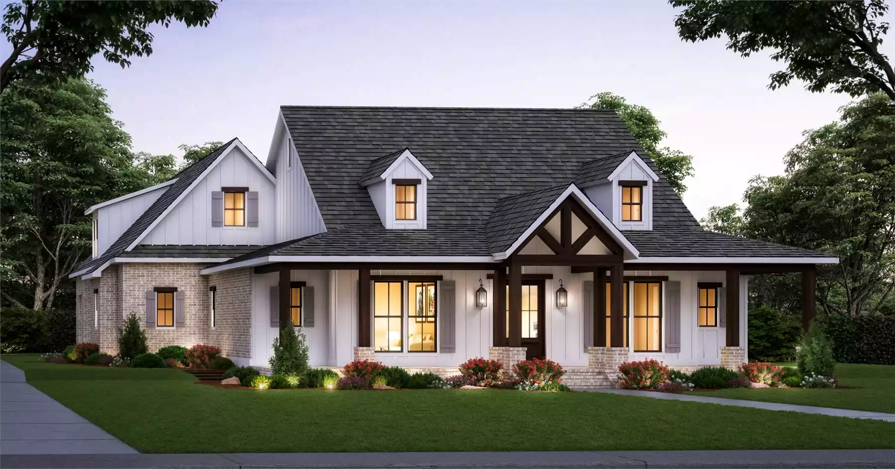Prepare to fall in love with all that this lovely country farmhouse has to offer. Every detail big and small, inside and out, has been flawlessly designed to create a one-of-a-kind home. Beginning with its enchanting curb appeal, the 2,584 square foot plan is perfect for a new or growing family. While the front porch welcomes guests inside, the subtle touches of exposed wood and stone give the adorable home a touch of refinement. Meanwhile, the interior is found within a single level which is both open and fully accessible. Explore areas like the vaulted family room and the huge island kitchen. Or note the utility of the large laundry room and covered carport with added storage. And think about all of the dinner parties that you can have thanks to that outdoor grilling station! Finally, retreat to one of the 4 bedrooms, each with their own private en-suite. The highlight of them all, however, is the master with its immaculate spa bath and equally as impressive walk-in closet. You'd be hard-pressed to find anything better than this!