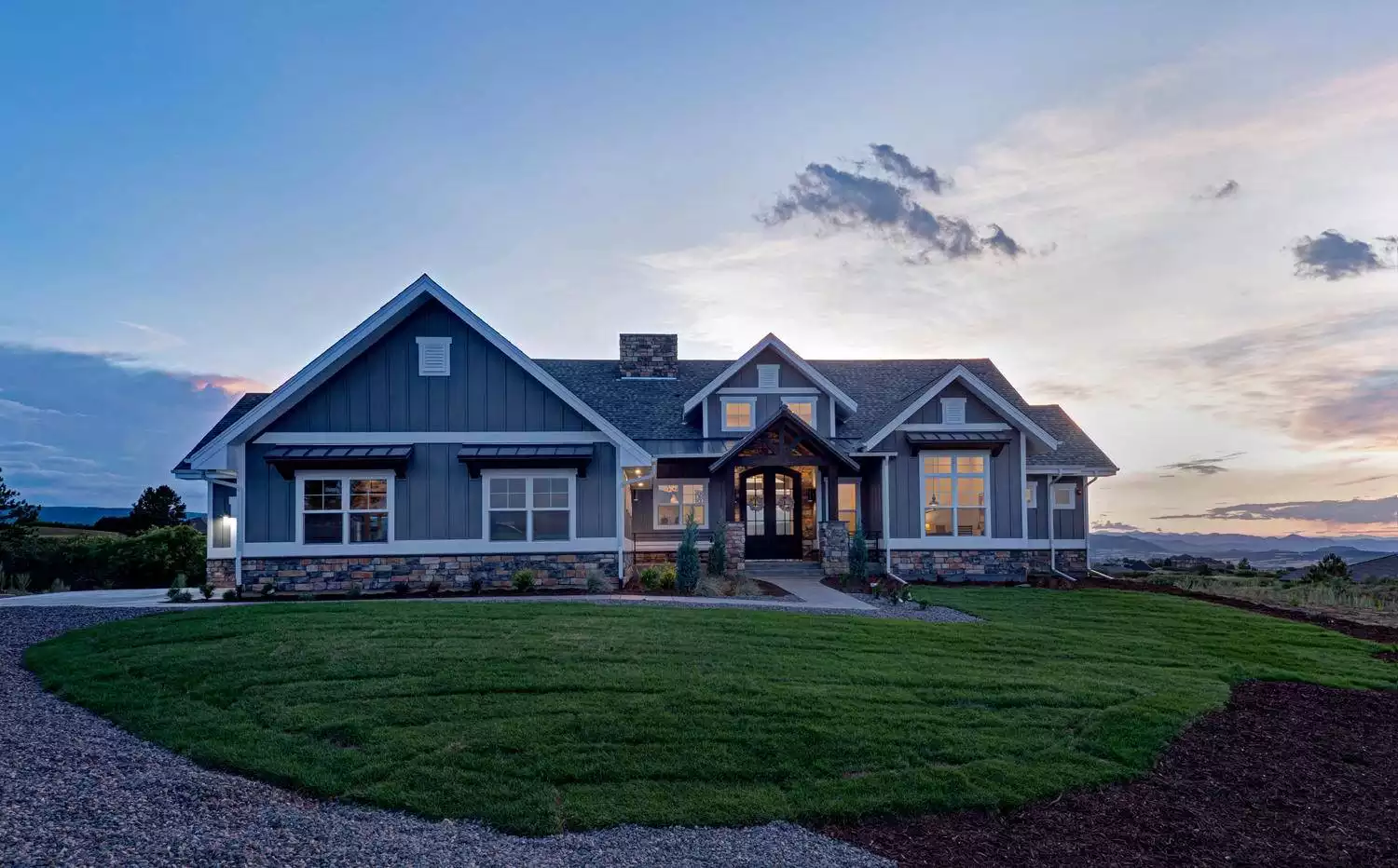The Elmville Craftsman house plan effortlessly blends rustic charm with modern comfort, making it a perfect fit for scenic mountain or lakeside settings. A striking exterior showcases varied gabled rooflines that echo the natural landscape, while a welcoming front porch sets the tone for the warm and inviting interior. Inside, the open-concept design creates a seamless flow, with vaulted ceilings enhancing the great room’s grandeur and large windows framing stunning rear views. The gourmet kitchen offers an abundance of workspace, perfect for entertaining, and the nearby mud/laundry room ensures everyday convenience. A luxurious retreat, the master suite enjoys a cozy fireplace, spa-like bath, and private deck access. Need more space? The optional walk-out basement expands the home with a recreation room, wet bar, exercise room, sauna, and two guest suites—adding an impressive 1,869 square feet of versatile living.