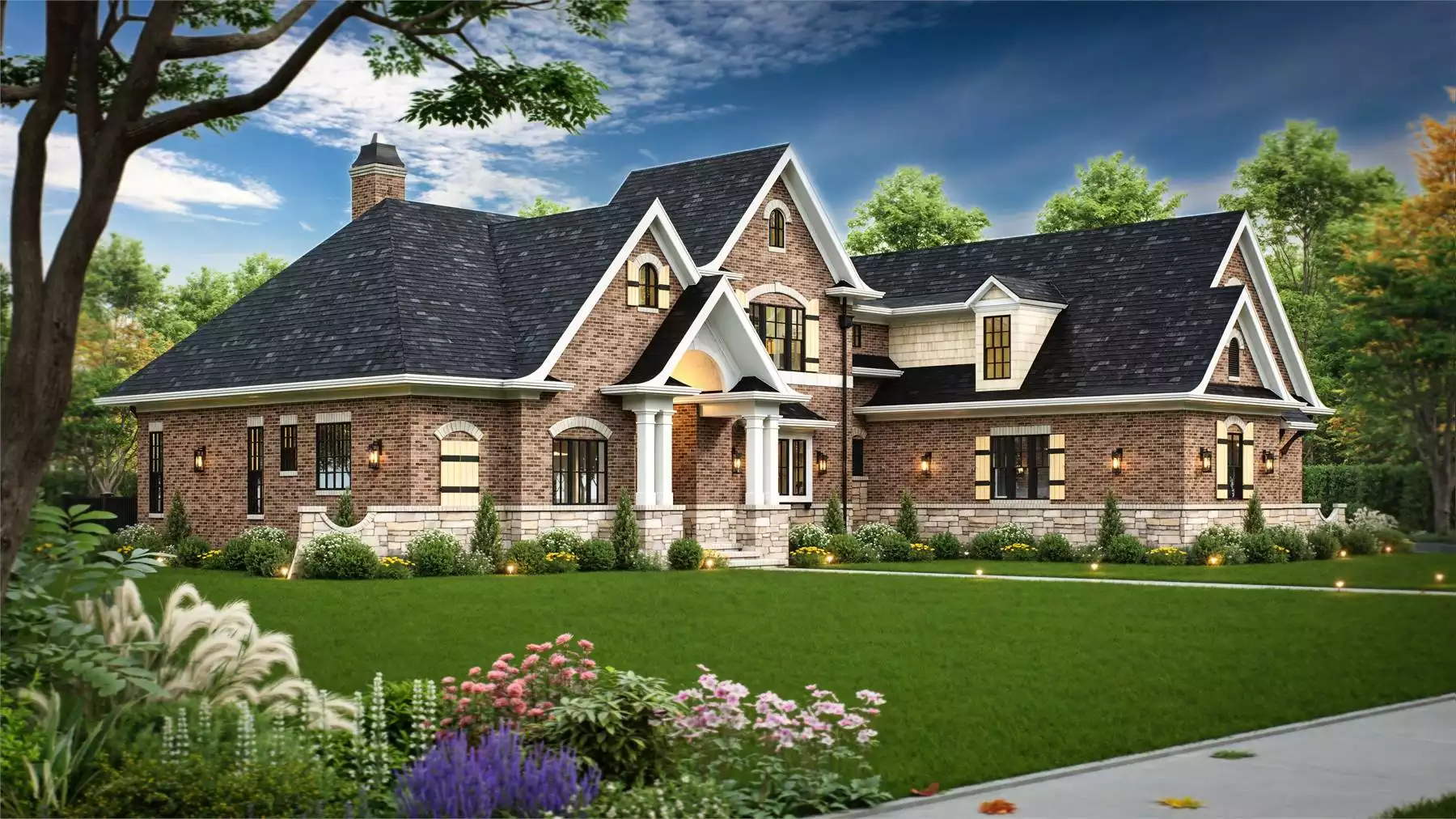 The spacious open floor plan featured in this luxury house plan is a great option for a home buyer looking for amenities in a small square footage. The cottage style offers curb appeal that will add value to any neighborhood. The large state-of-the-art kitchen boasts a multi-purpose, free-standing island. The luxurious master bedroom has direct access to the patio and view of the backyard.