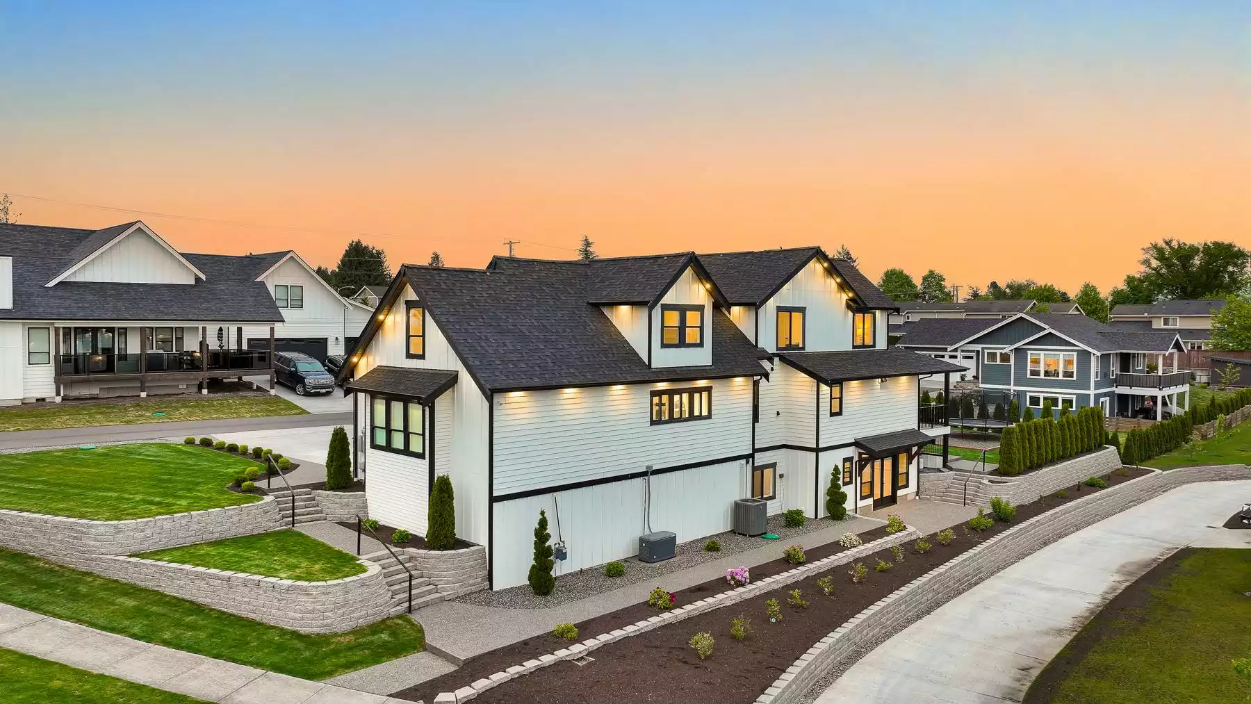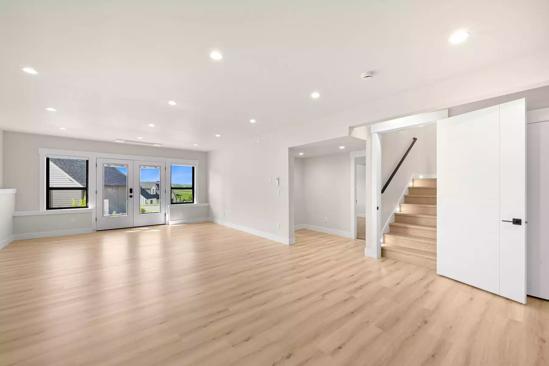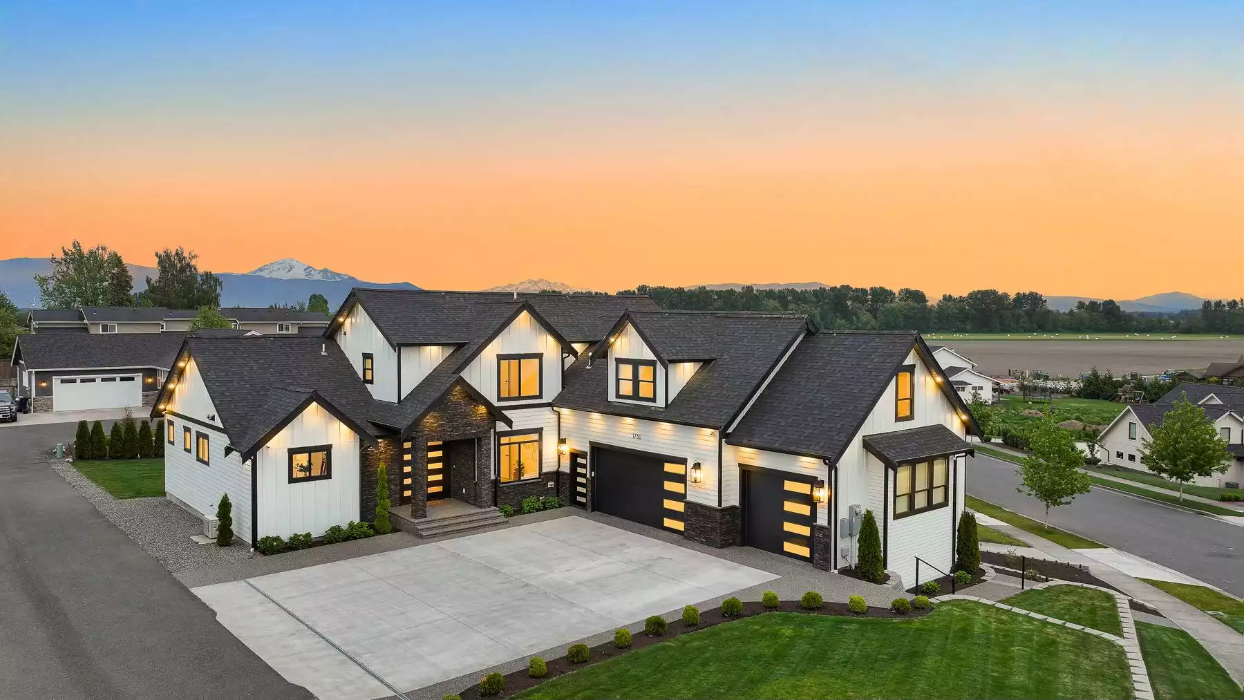 Wild Rose Lane is a beautifully balanced modern farmhouse that blends timeless curb appeal with bright, open living across 4,011 square feet. A striking stone and wood exterior welcomes you into a spacious entry foyer with a front den that is perfect for a home office or quiet retreat. The heart of the home opens into a vaulted great room that flows seamlessly into the dining area and a U-shaped kitchen featuring a central island and a walk-in pantry, creating a layout designed for everyday living and easy entertaining. The private primary suite is tucked to the left side of the home and includes a relaxing ensuite bathroom and a generous walk-in closet. Upstairs, three additional bedrooms share a large full bathroom, while a bonus room and dedicated storage area provide flexible space for growing families, hobbies, or guest accommodations. A three car garage completes this thoughtful two story design with both style and function in mind.