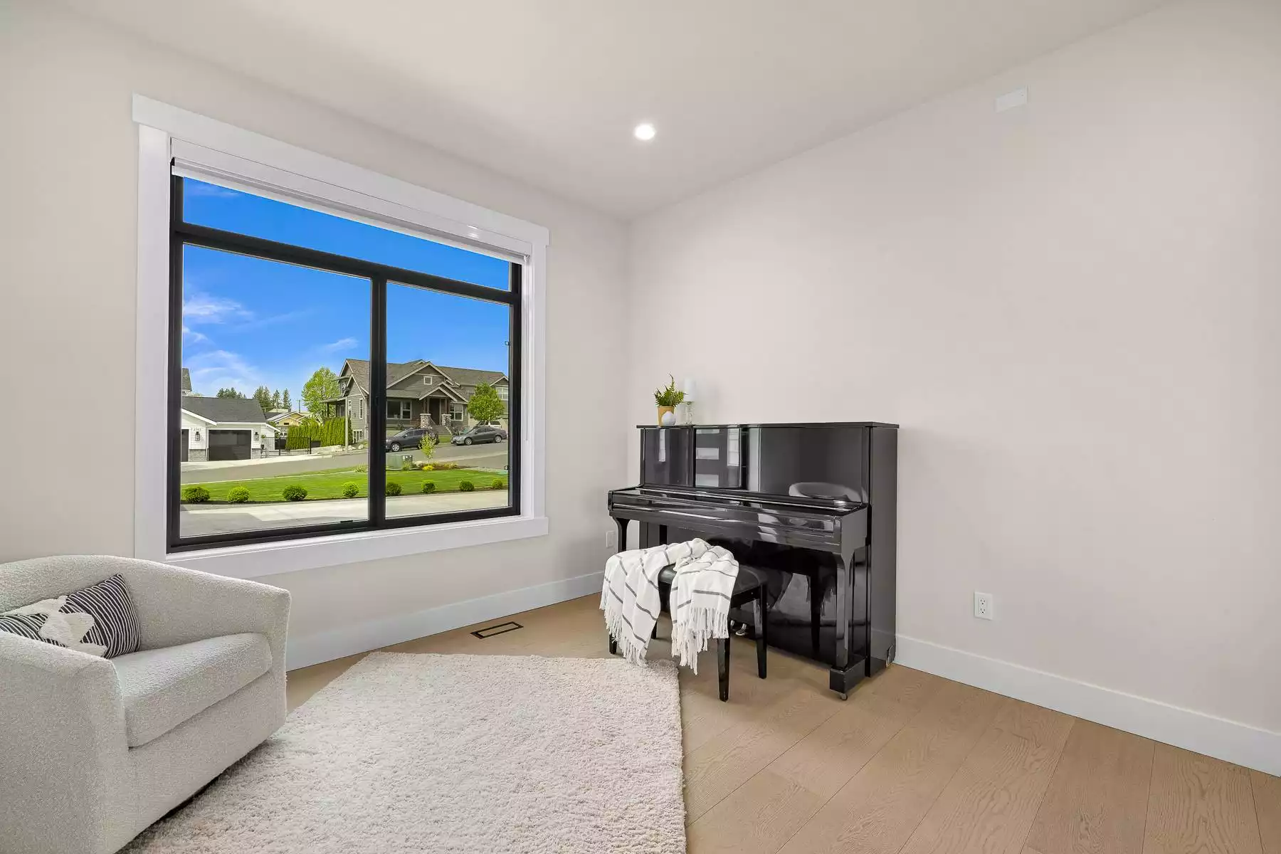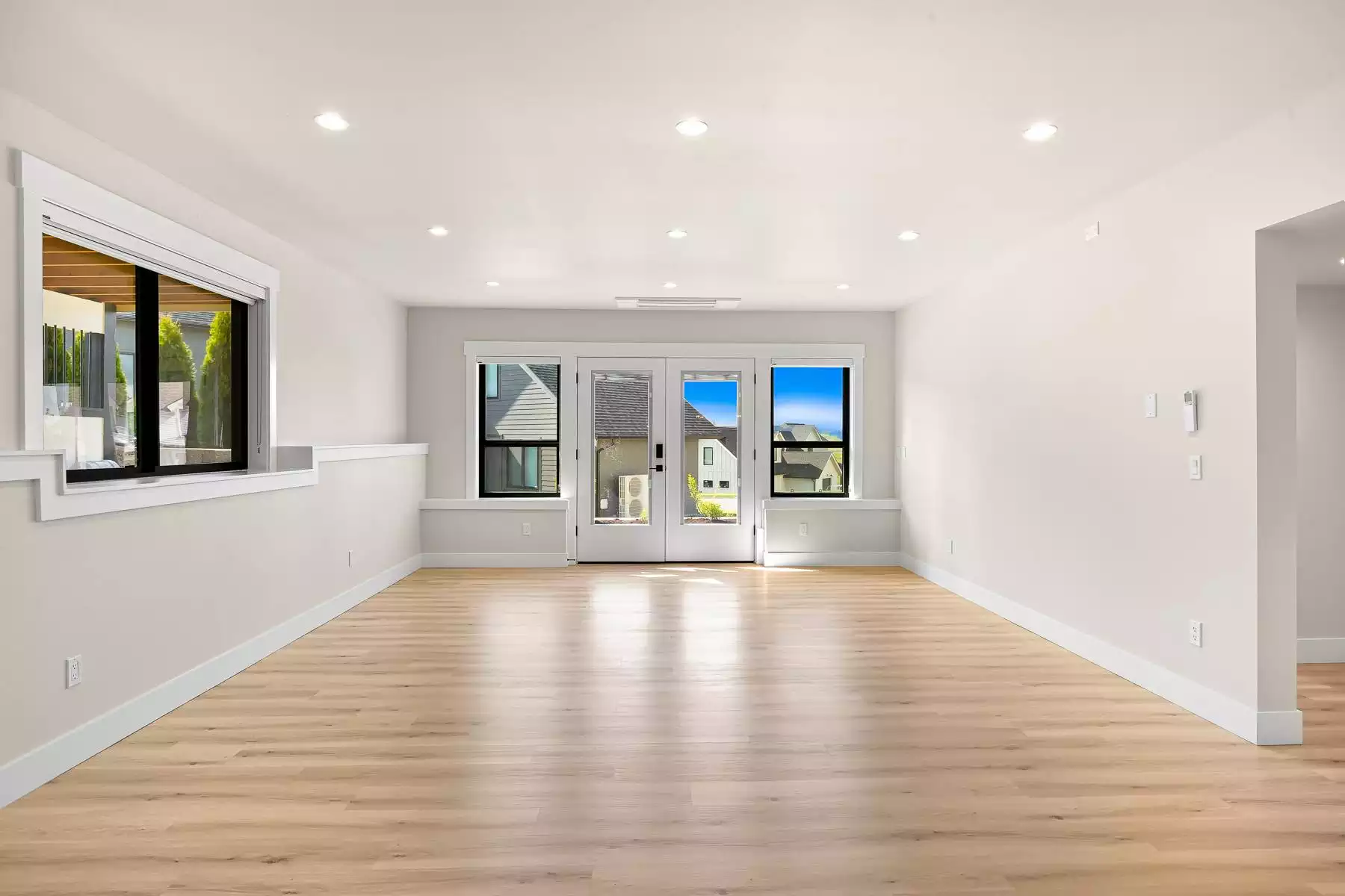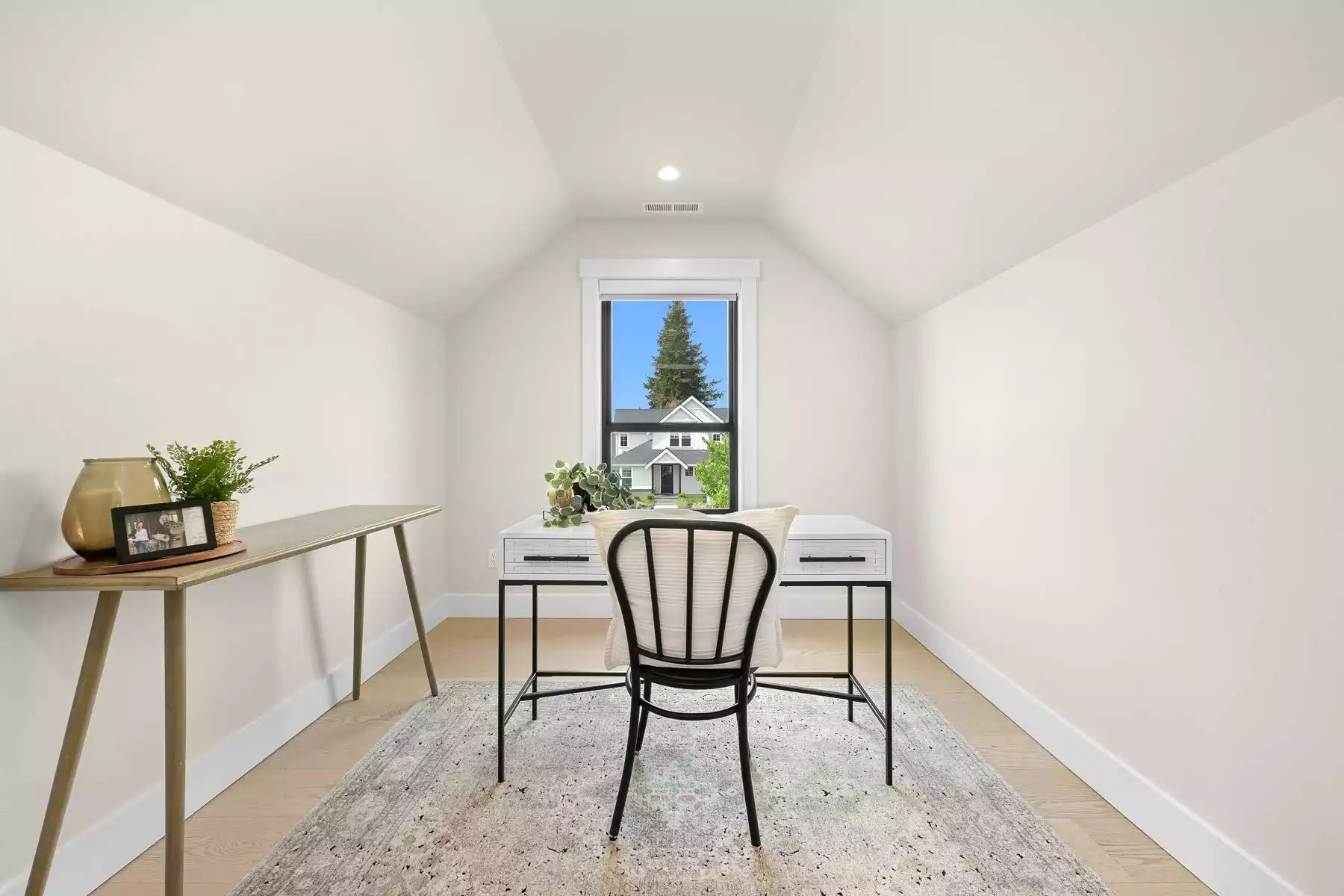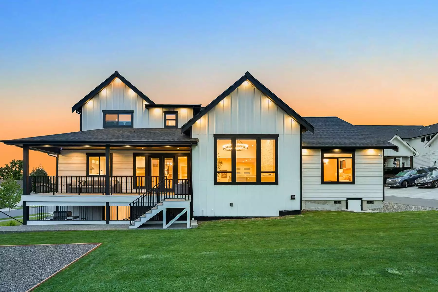 Wild Rose Lane is a beautifully balanced modern farmhouse that blends timeless curb appeal with bright, open living across 4,011 square feet. A striking stone and wood exterior welcomes you into a spacious entry foyer with a front den that is perfect for a home office or quiet retreat. The heart of the home opens into a vaulted great room that flows seamlessly into the dining area and a U-shaped kitchen featuring a central island and a walk-in pantry, creating a layout designed for everyday living and easy entertaining. The private primary suite is tucked to the left side of the home and includes a relaxing ensuite bathroom and a generous walk-in closet. Upstairs, three additional bedrooms share a large full bathroom, while a bonus room and dedicated storage area provide flexible space for growing families, hobbies, or guest accommodations. A three car garage completes this thoughtful two story design with both style and function in mind.