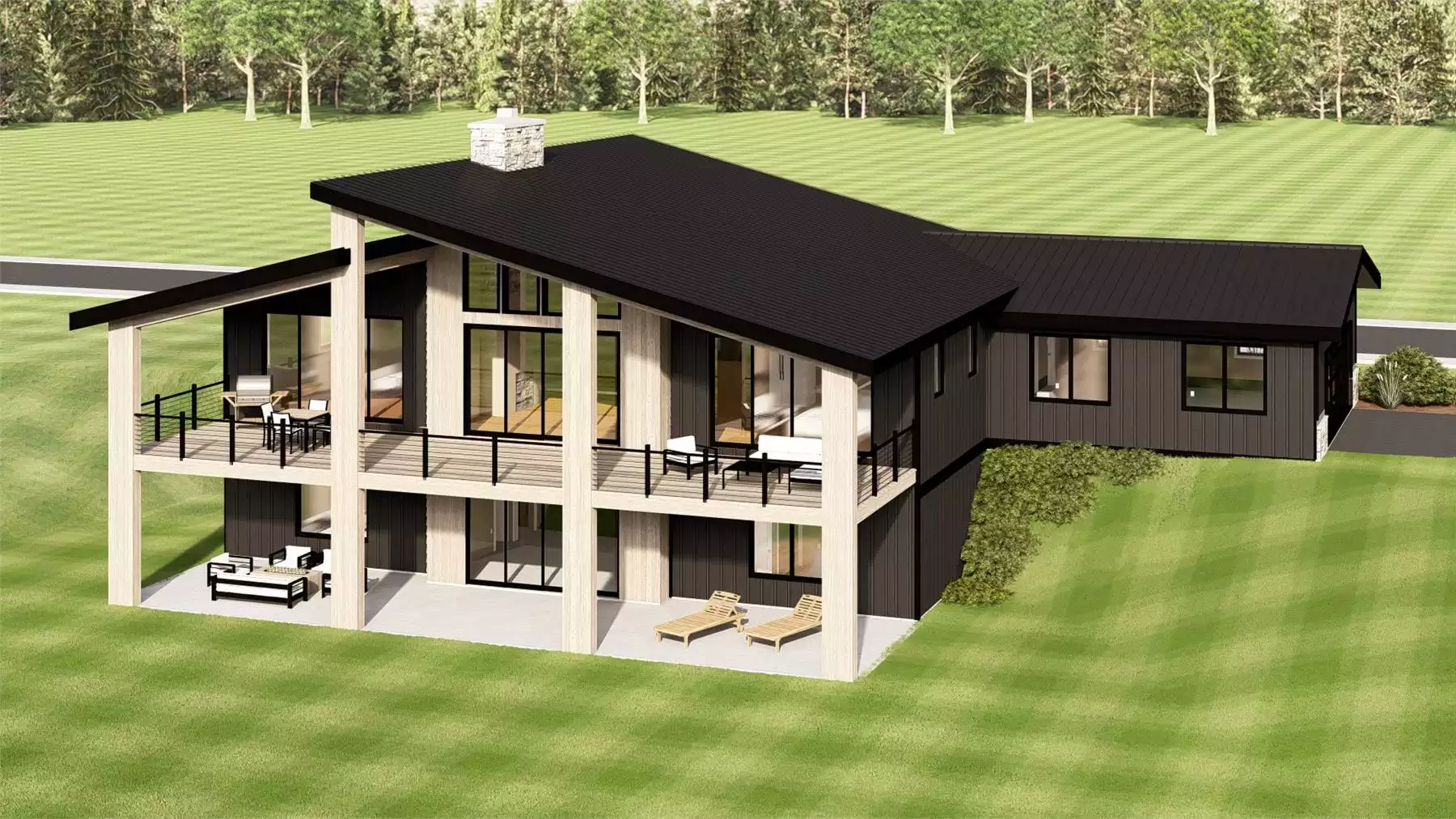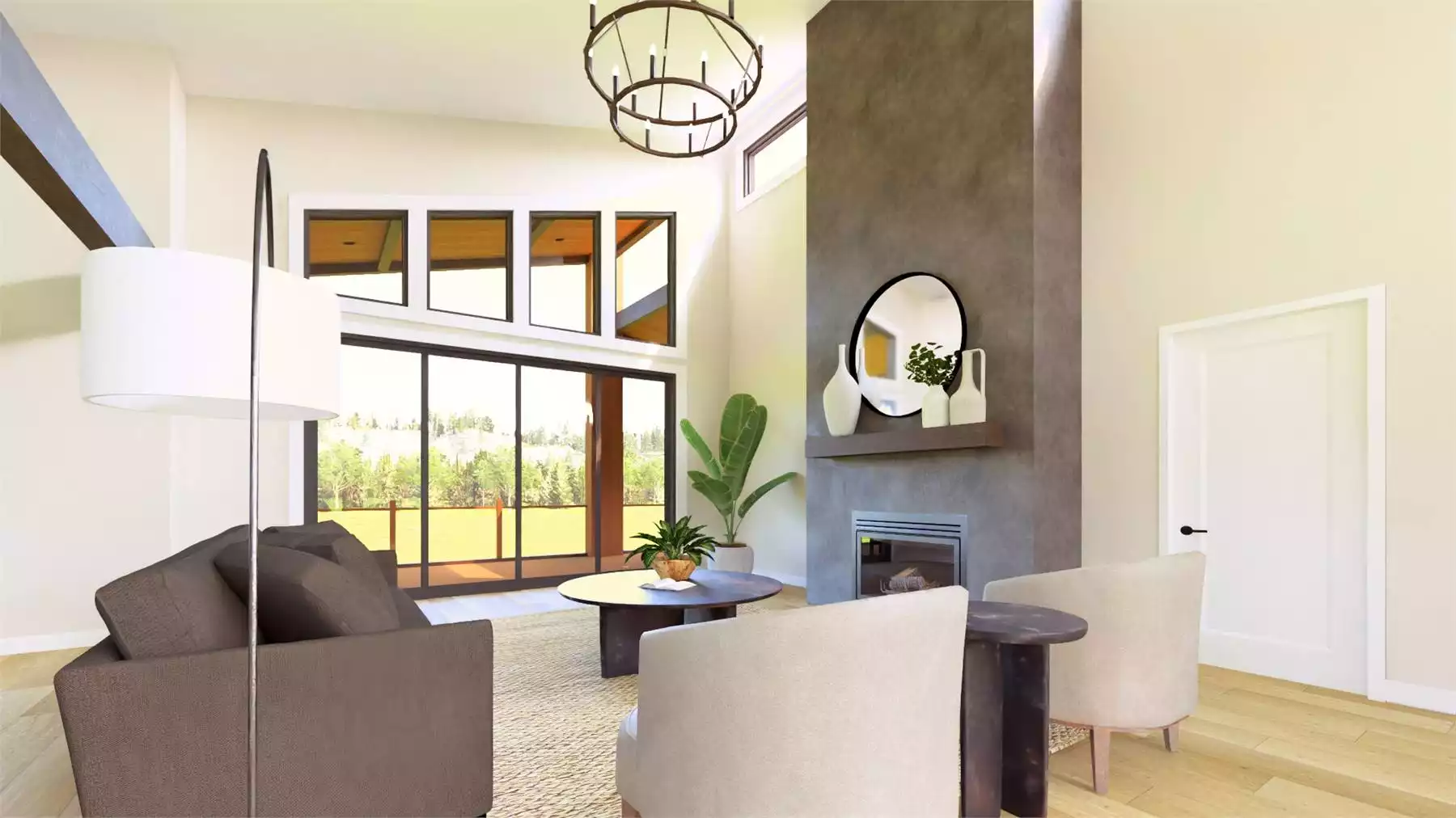 Brindlewood is a 2,034-square-foot, single-story home designed for effortless main-level living with standout style and functionality, featuring 1 bedroom, 1.5 bathrooms, and a 2-car garage. A charming front porch welcomes you into a spacious foyer, where you’ll find garage access, a mudroom, laundry area, and a walk-in pantry perfectly positioned for easy grocery drop-off. The private primary suite sits on the right side of the home and offers a luxurious ensuite with dual vanities, a large walk-in shower, and two walk-in closets. At the rear of the home, an open floor plan unfolds with a vaulted great room and fireplace, a large L-shaped kitchen with an oversized island, and a bright dining area—all with access to a breathtaking covered deck that spans the back of the home. For added versatility, an optional 1,302-square-foot walk-out lower level adds two bedrooms, a full bath, a rec room, and a kitchenette, making it perfect for entertaining or multi-generational living, especially on sloped lots.
