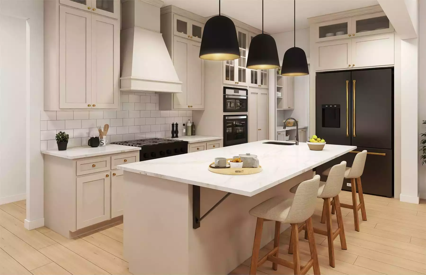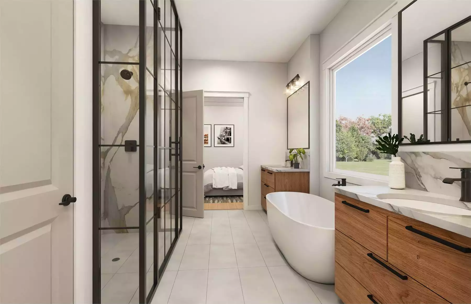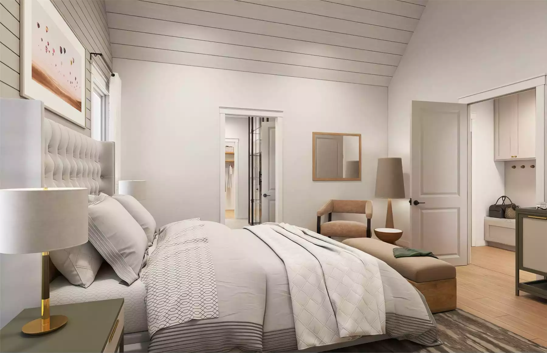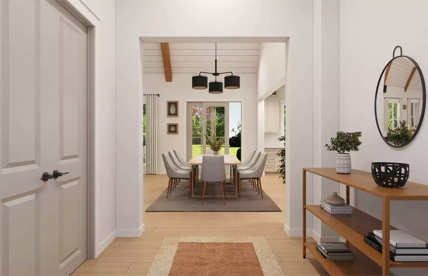 The Maryville Modern Farmhouse offers 2,500 sq. ft. of beautifully designed living space, blending classic charm with contemporary convenience. This one-story layout features 4 bedrooms and 3.5 bathrooms, making it an ideal choice for families. The open-concept great room and dining area boast vaulted ceilings with decorative beams, creating a spacious and inviting atmosphere. A chef’s kitchen with a large island, walk-in pantry, and convenient workspace flows seamlessly into the main living areas. The primary suite is a true retreat, complete with a vaulted ceiling, a luxurious en-suite featuring a freestanding tub, and an oversized walk-in closet. Additional highlights include a private office, large laundry room with storage, and a three-car garage with extra space for organization. Outdoor living is a priority, with front and rear porches, an outdoor kitchen, and a cozy fireplace, perfect for entertaining. Designed for comfort and functionality, the Maryville Modern Farmhouse is a stunning choice for modern country living.