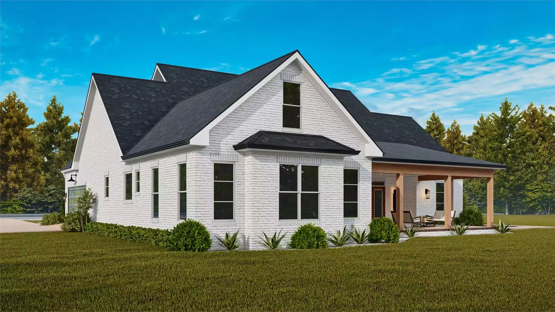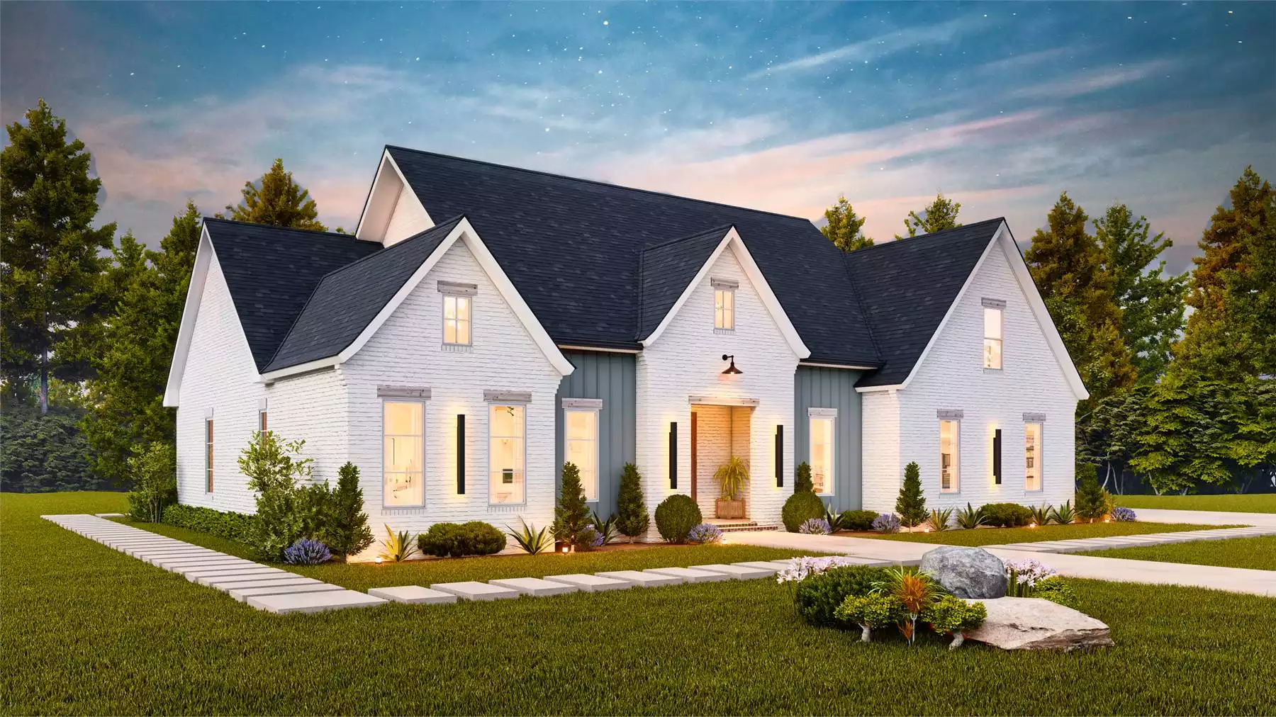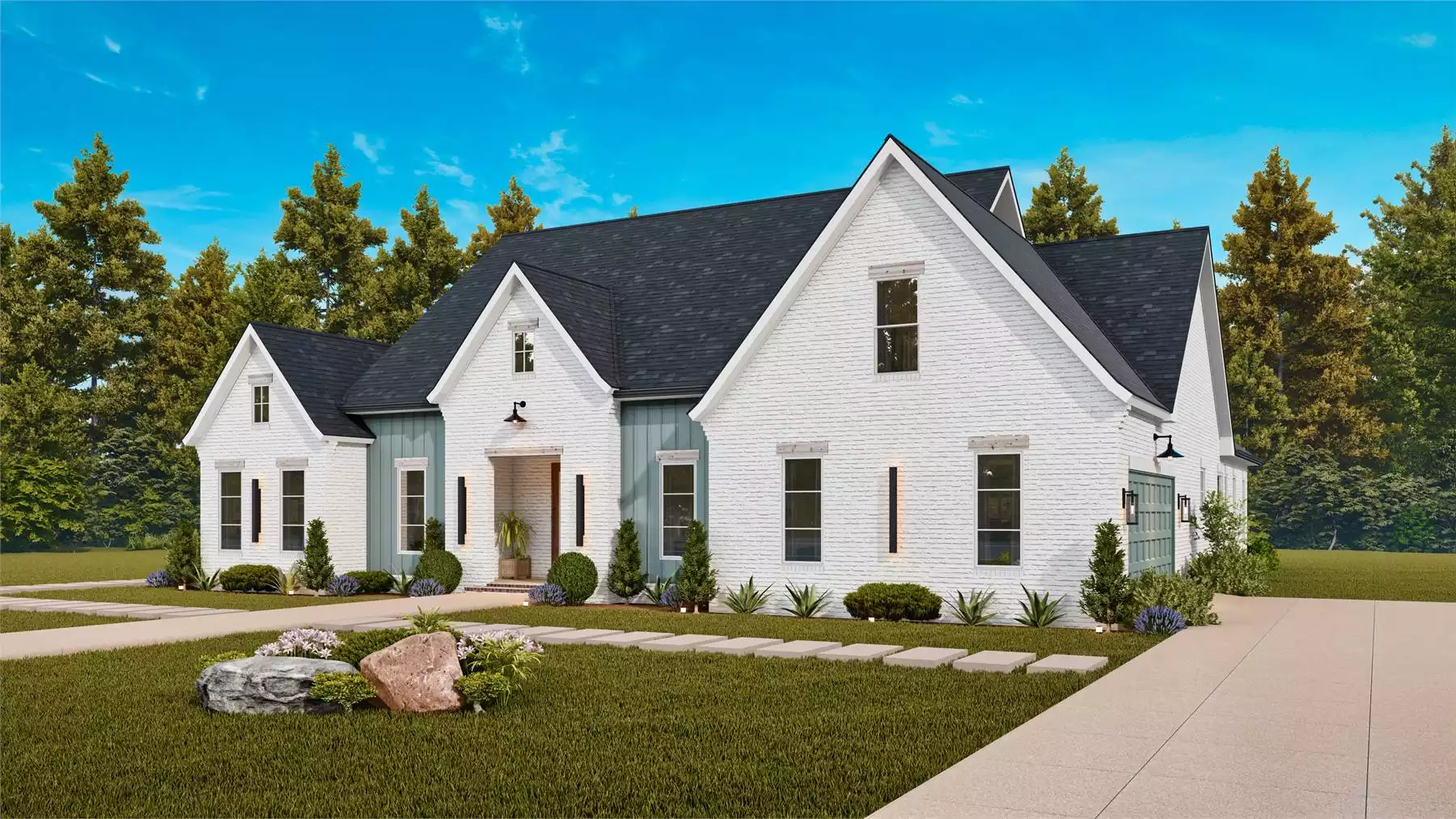 Robin Hollow is a stunning modern farmhouse designed with exceptional interior spaces and stylish functionality. The expansive primary suite features a vaulted tray ceiling, a luxurious ensuite with double vanity sinks, a soaker tub, a separate shower, and his-and-hers walk-in closets. Two additional bedrooms each have private bathrooms, with a powder room available for guests. The vaulted great room, dining area, and chef’s kitchen with a central island and casual seating create an inviting open-concept layout, while a front-facing office adds a dedicated workspace. Outdoor living is enhanced by a large rear covered porch with an outdoor kitchen, and a two-car garage with side access completes this beautifully crafted home.