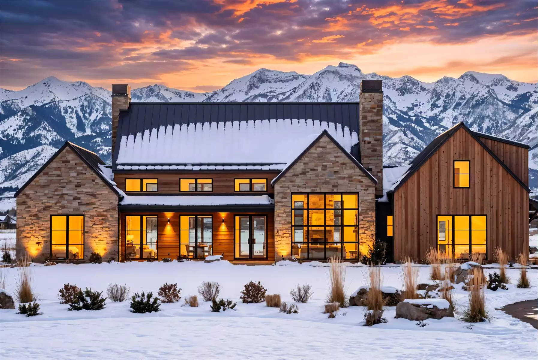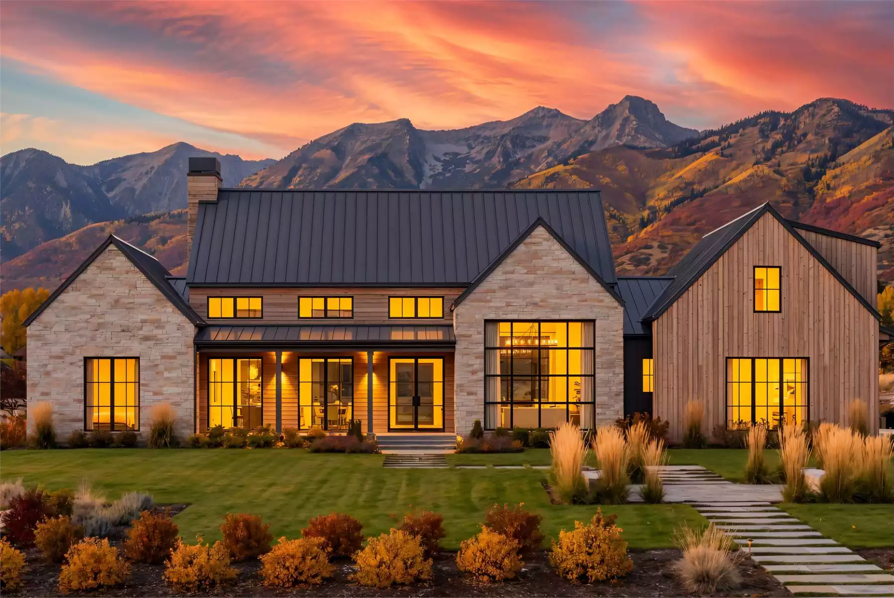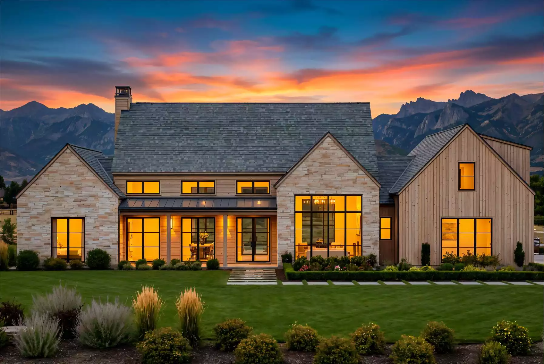 Bergamont Ridge is a 3,434 square foot single-story stunner that blends modern design with natural warmth, featuring a striking wood and stone exterior and expansive windows that fill the home with light. A sprawling covered front porch welcomes you into a show-stopping vaulted great room with a dramatic fireplace and seamless access to a spacious rear porch. The open-concept layout centers around a chef’s dream kitchen with generous counter space, a central island, dedicated dining area, and a massive walk-in pantry. The right wing of the home hosts three secondary bedrooms and two full baths, including a Jack and Jill setup. The left wing is a private retreat reserved for the luxurious primary suite, offering outdoor access, a spa-like ensuite, and a dream-worthy walk-in closet. With 4 bedrooms, 3.5 bathrooms, and a 3-car garage, this plan is as functional as it is breathtaking.