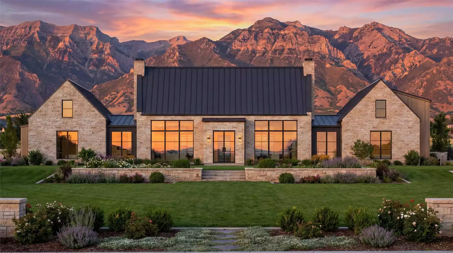 Introducing Twin Lakes, a modern farmhouse that artfully combines contemporary design with rustic charm. This expansive home boasts 3,782 square feet of living space, including four spacious bedrooms, each with its own walk-in closet, and four and a half baths. The open-concept main living area features a vaulted ceiling, creating an airy ambiance complemented by large windows offering breathtaking views. The split bedroom design offers privacy for guests with a full ensuite. The primary suite boasts private access to the back porch, a large luxurious ensuite, and a walk-in closet. Outdoors, a massive rear-wrapping porch provides ample space for entertaining. With a versatile bonus room above the three-car garage, Twin Lakes is perfect for modern living with a touch of farmhouse elegance.