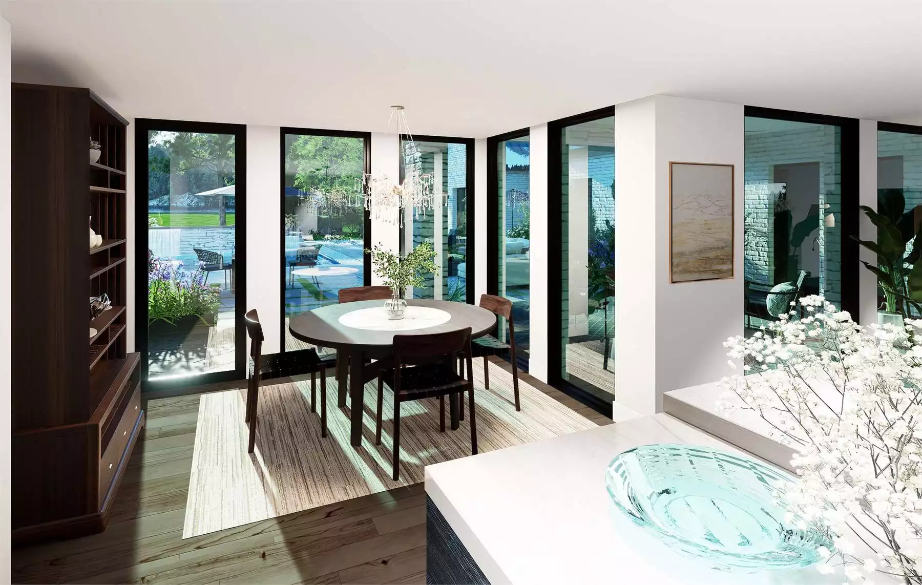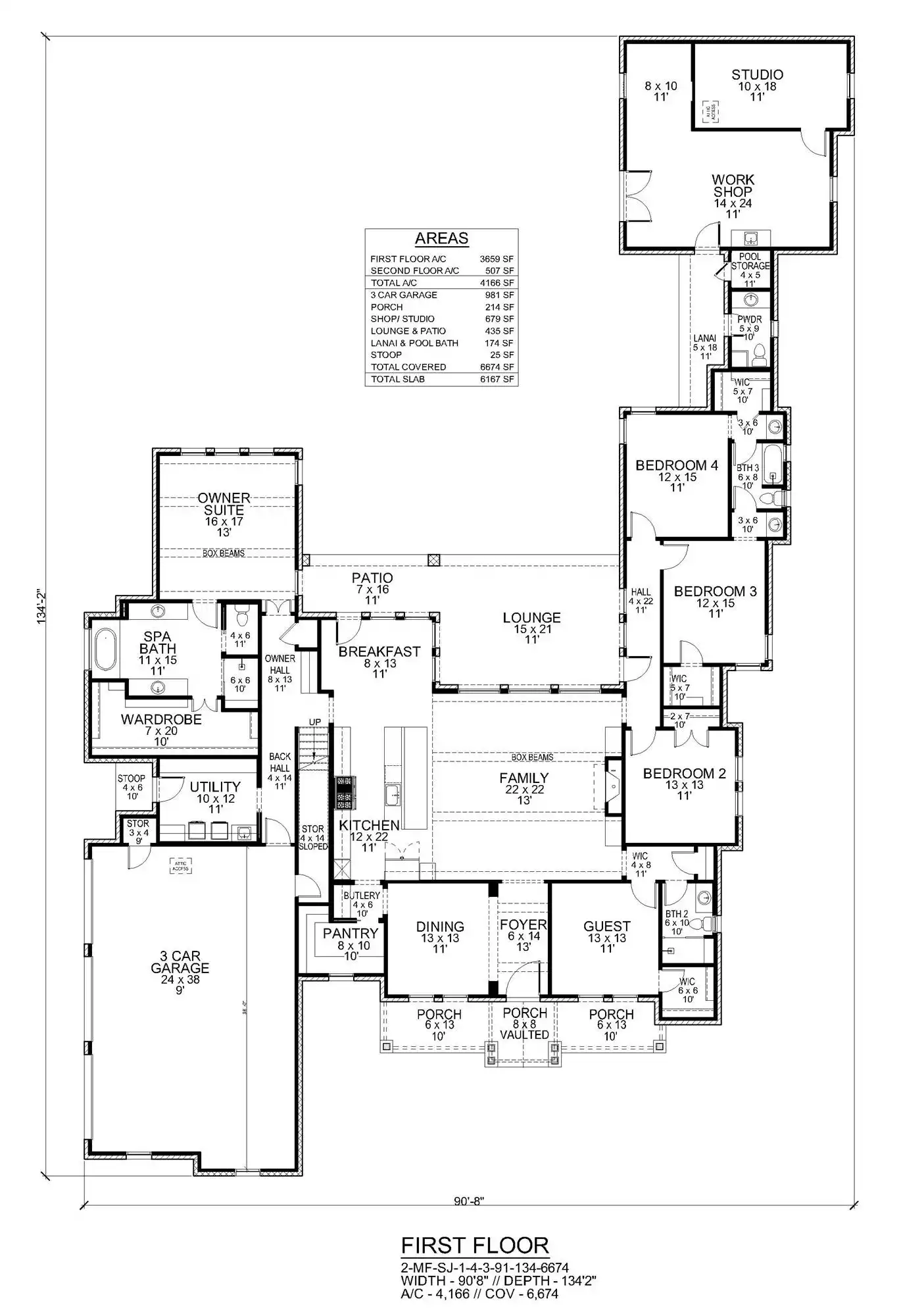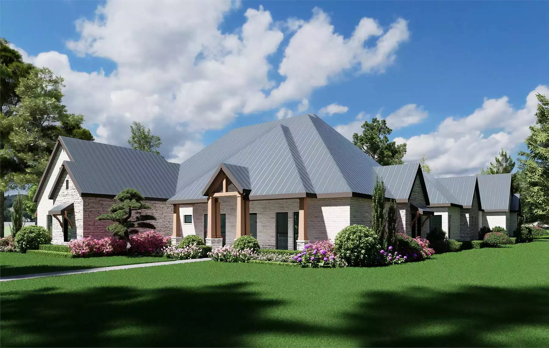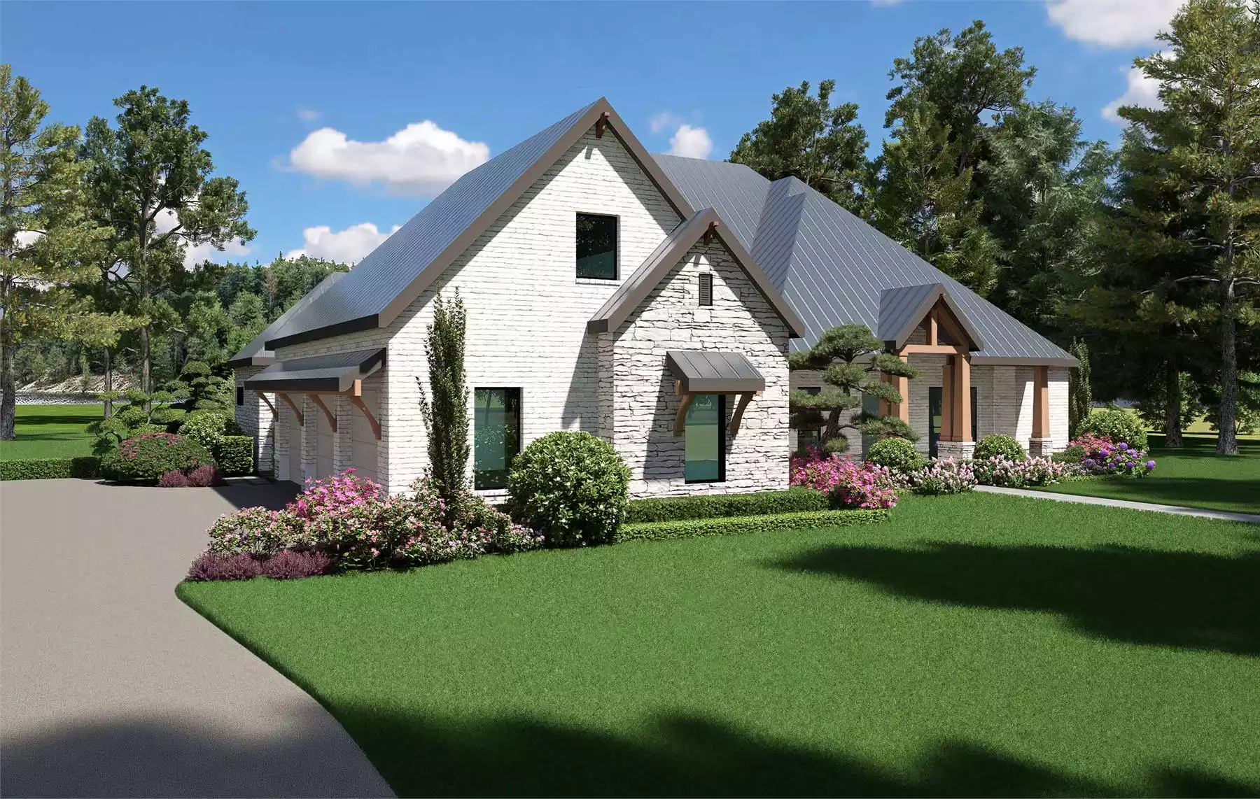 Still Gardens is a stunning 4,166 square foot modern farmhouse, thoughtfully designed with five bedrooms, 3.5 bathrooms, and a three-car garage to blend elegance with everyday comfort. A vaulted front porch welcomes guests into the home, leading to a formal dining room and guest suite at the front. The right wing features three additional bedrooms and two full bathrooms, with a flexible workshop/studio space, pool storage, and a powder room at the rear—perfect for creative or active lifestyles. On the left side, the three-car garage offers easy access to the utility room, making daily tasks seamless. Tucked away at the back, the owner’s suite provides a private sanctuary with a spa-like bathroom and spacious walk-in closet. The heart of the home is the central family room and kitchen, where a large island and open-concept design create an inviting space for gathering. Expanding the living experience, a generous outdoor lounge enhances indoor-outdoor connectivity. Upstairs, a vaulted loft, office, and storage space provide additional flexibility. Still Gardens is a modern farmhouse masterpiece, offering warmth, versatility, and sophisticated design for today’s lifestyle.