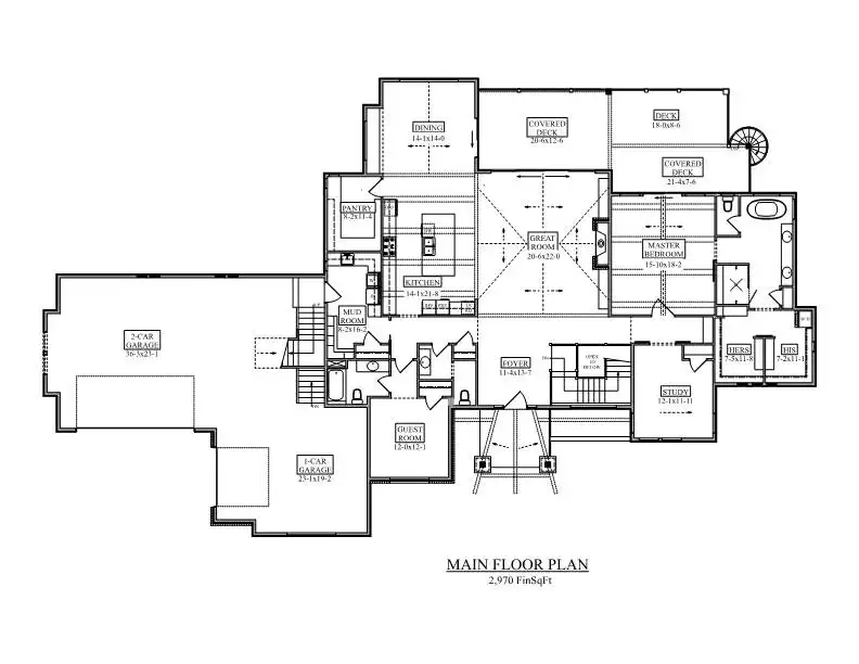 Hampshire Hill is a stunning 2-bedroom, 2.5-bathroom Modern Mountain home that captures the essence of elevated rustic living. Striking stone and wood accents, along with a grand open-gable entry, create impressive curb appeal. Inside, the vaulted great room features a cozy fireplace and oversized sliding doors that lead to a covered deck—perfect for enjoying scenic views year-round. The kitchen is equally impressive, with a large multi-functional island, a 6-burner range, and a spacious walk-in pantry. A private hallway leads to a vaulted primary suite complete with a luxurious 5-piece ensuite and his-and-hers closets. A quiet study and guest suite with full bath offer flexible space for work or visitors. The mud/laundry combo room just off the 3-car garage keeps things organized. Want more room to grow? Finish the optional basement to nearly double your living space, adding 3 more bedrooms, 2 bathrooms, a large second great room with a fireplace, a game nook, and a wet bar. A spiral staircase elegantly connects the lower patio to the deck above, making this plan perfect for entertaining and multigenerational living.