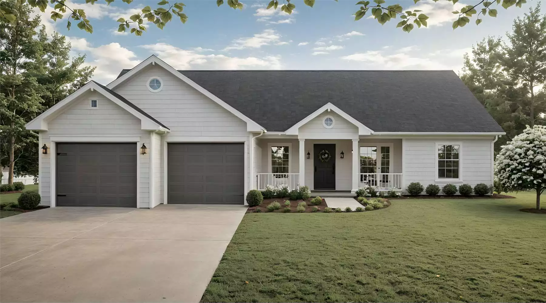 The Cherry Ave is a charming ranch-style home offering 1,400 square feet of comfortable, single-level living with a smart split-bedroom layout. This three-bedroom, two-bathroom design features an inviting covered front porch, a front-entry two-car garage, and an open-concept great room, dining area, and kitchen that seamlessly connect to the rear patio—perfect for easy indoor-outdoor living. The private primary suite is a true retreat with a spa-inspired ensuite, including split dual vanities and a spacious walk-in closet, while two additional bedrooms and a full bath are thoughtfully placed on the opposite side of the home for added privacy.