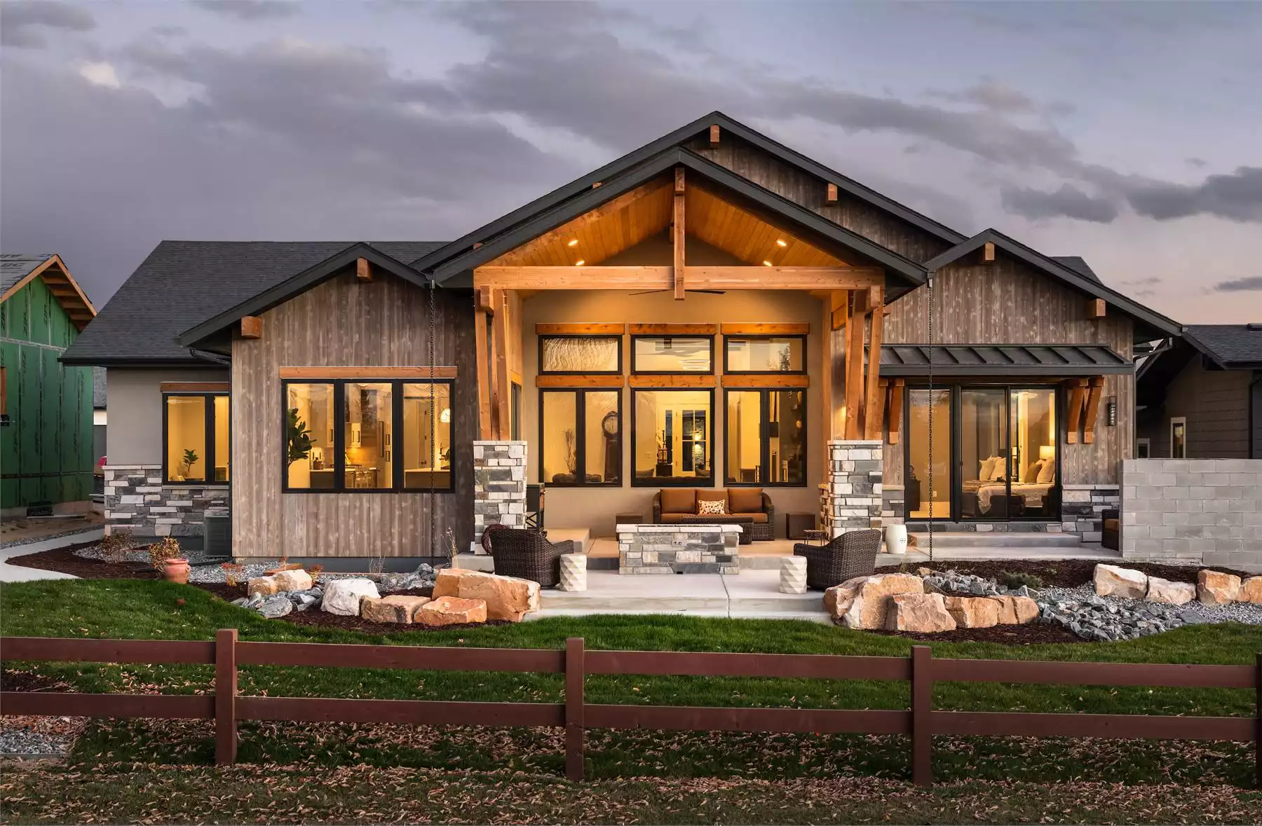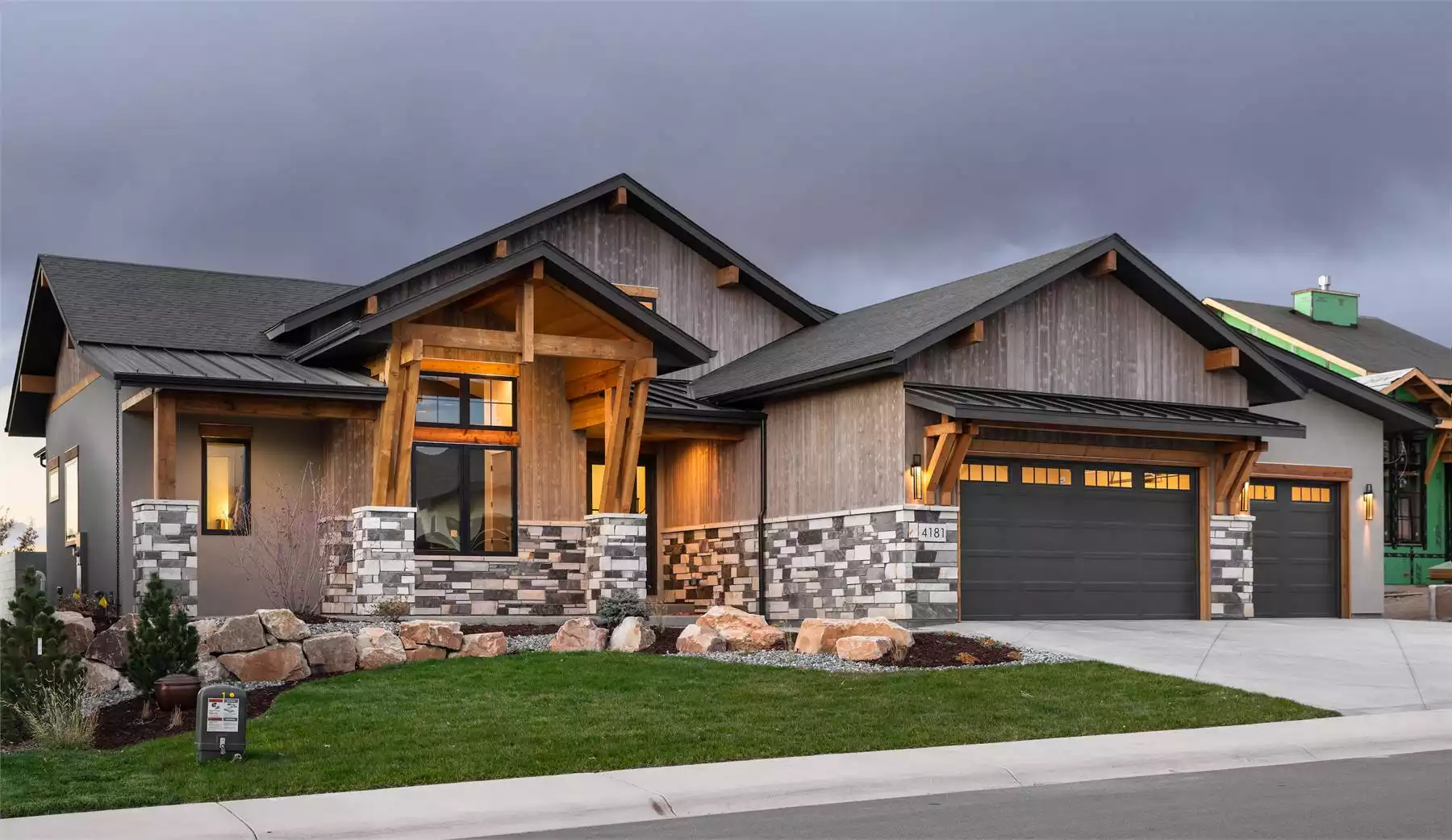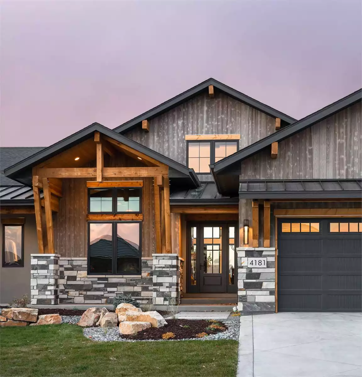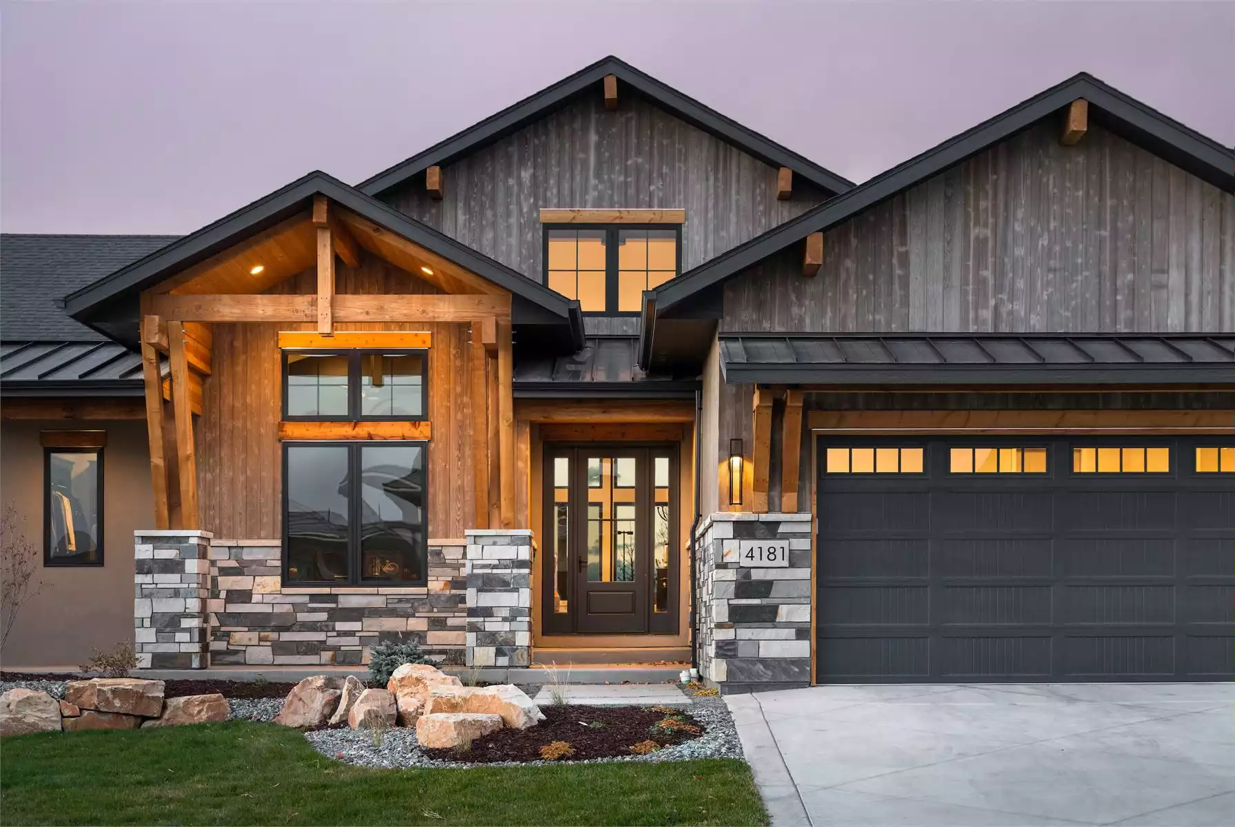 Geranium Grove is a stunning Contemporary Craftsman home that masterfully blends modern elegance with timeless craftsmanship. Spanning 2,615 square feet on the main level, this thoughtfully designed retreat features exposed beams accenting the lofty foyer and light-filled living room, creating a warm yet sophisticated atmosphere. The open kitchen and dining area are perfect for gathering, complete with a large island, a walk-in pantry, and sliding doors leading to a covered patio for seamless indoor-outdoor living. The primary suite is a serene escape, boasting an elevated tray ceiling, a spa-like ensuite with five fixtures, and private access to the rear patio. A secondary bedroom suite, a quiet den, and a spacious mud/laundry room add to the home's functionality. For those seeking even more space, the optional lower level expands to 2,388 square feet, featuring a wet bar, recreation and media rooms, two additional bedroom suites, and a home gym, making Geranium Grove the perfect fusion of comfort and contemporary craftsmanship.