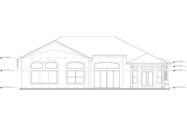 If the exterior of this one-story home design doesn't immediately grab you, the interior certainly will. The large foyer gives an immediate view out to the covered patio, with large sliding glass doors that bring the outside in. The foyer bridges the two sides of the home. To your left is the large master bedroom suite with a beautiful tray ceiling. The posh bath flaunts a garden tub, a separate shower, his and hers sinks, a walk-in closet and a private water closet. An entrance into the living room from both the master bath and the foyer allows for this room to be used as a living room, a private office or an exercise room. To the right, the "family" side of the home features a large dining room, a gourmet kitchen, a breakfast nook, and a family room. The two secondary bedrooms are good-sized and share a full bath. Dads can enjoy the two-car garage with golf cart storage, perfect for homes on the fairway. This home is the same as Plan 4100 but without the bonus room. (Note: The rendering of the plan shows the bonus room.)