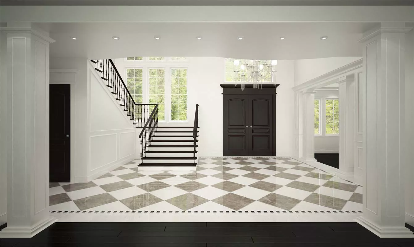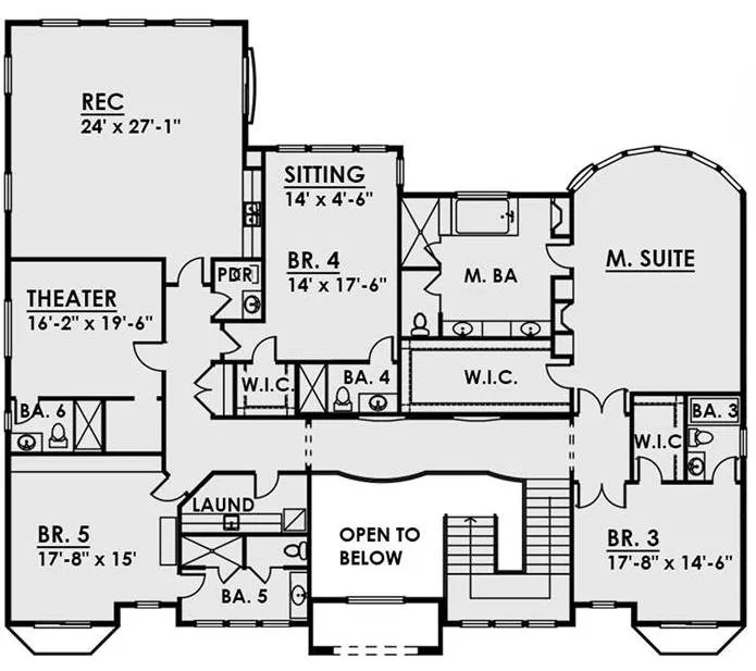House plan 8616 is a luxury 6,765 square foot home with six bedrooms and six-and-a-half bathrooms. Adorned with classical features, this home is perfect for a growing family who cares about the details. The entry has an open feel and leads to the living room and dining area where the entire family can spend quality time together. The kitchen is a chef's delight with lots of cabinetry, a large island that serves as a breakfast bar, and an eating area. There's also a cozy den space in the front of the home that is perfect for reading or watching a movie. Upstairs is a large master suite that features a luxurious bathroom with double vanity sinks, a separate tub and shower, and access to the large walk-in closet. There are four additional bedrooms upstairs along with a recreation room and private theater.