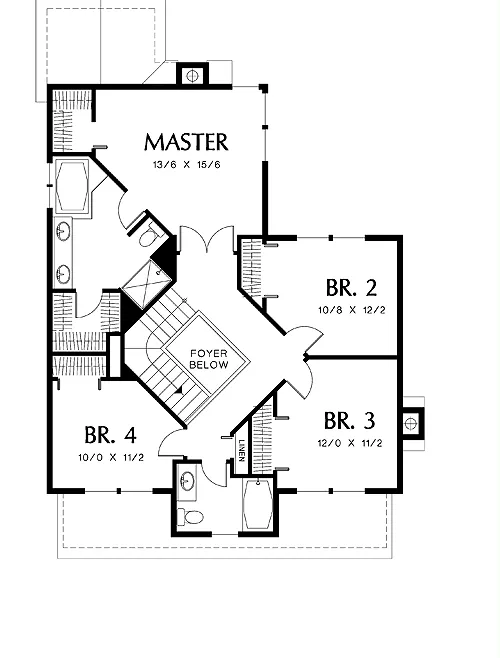 Bedrooms on the upper level include three family bedrooms and a master suite. Two walk-in closets, a separate shower and tub, and dual sinks grace the master suite. Family bedrooms share a hall bath. An unattached garage is included in the plans. It links to the main house