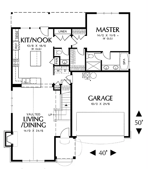 This picturesque cottage is brimming with enchanting details, from the stone chimneystack to the cedar-shingle accents. A dormer window over the two-car garage is also a nice touch. Though moderate in size, this home is very accommodating. It offers a vaulted living/dining area with fireplace, a kitchen with and island and a 42 eating bar that separates it from the living area, a nook with patio access and a built-in desk and a service area with laundry, pantry, half bath and large linen closet. The master suite is secreted away behind the garage and features a walk-in closet, a wall closet and a bath with spa tub, separate shower and dual lavatories. The upper level holds two additional bedrooms. One has a walk-in closet. They share a full bath and a linen closet.