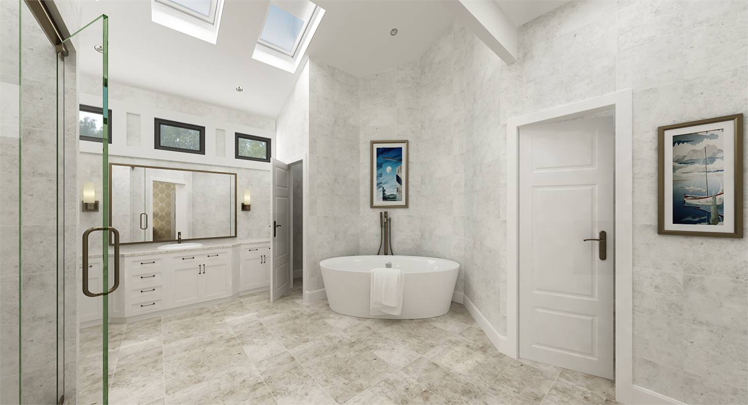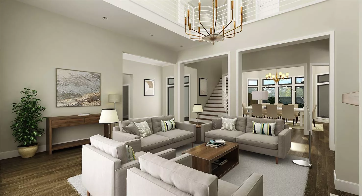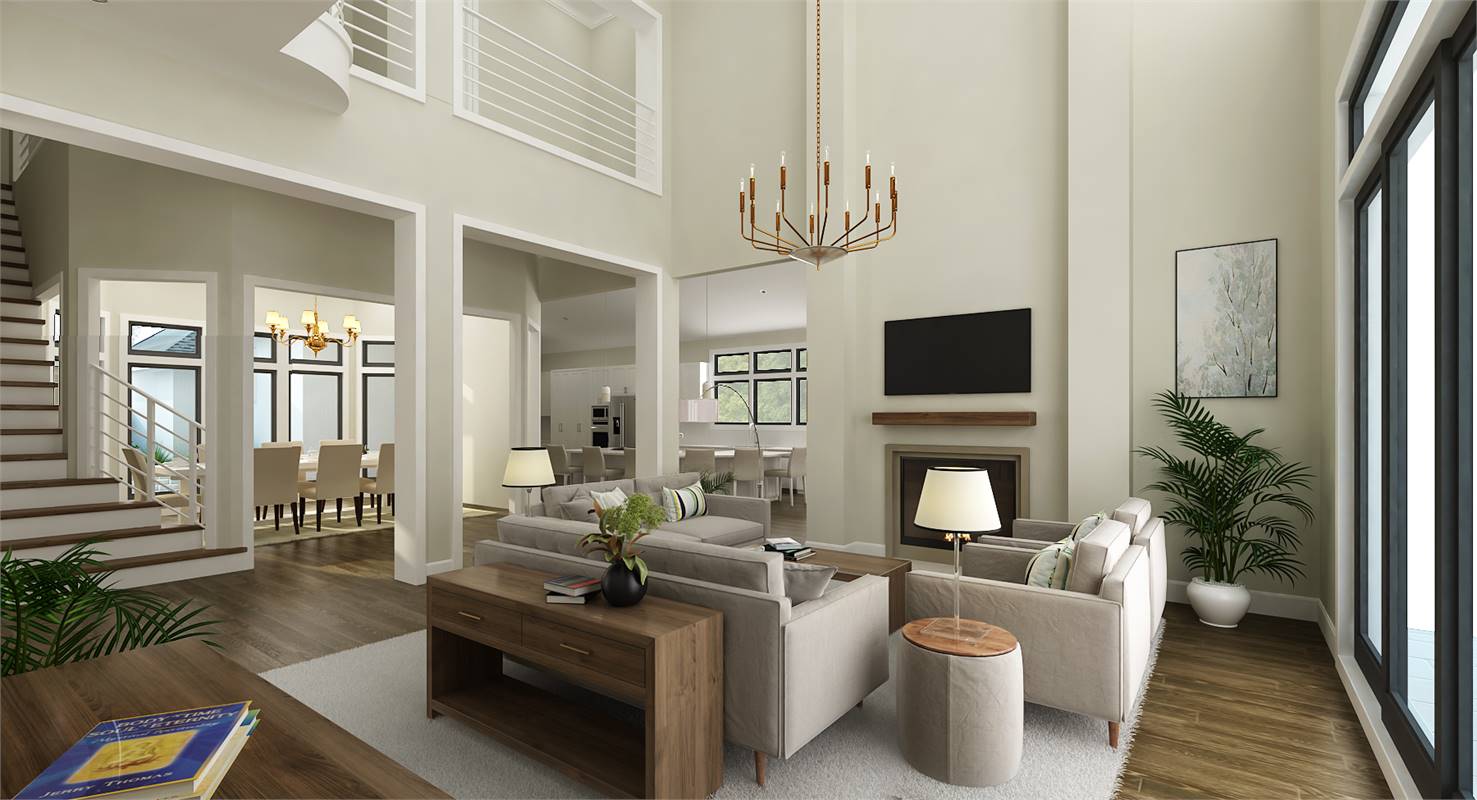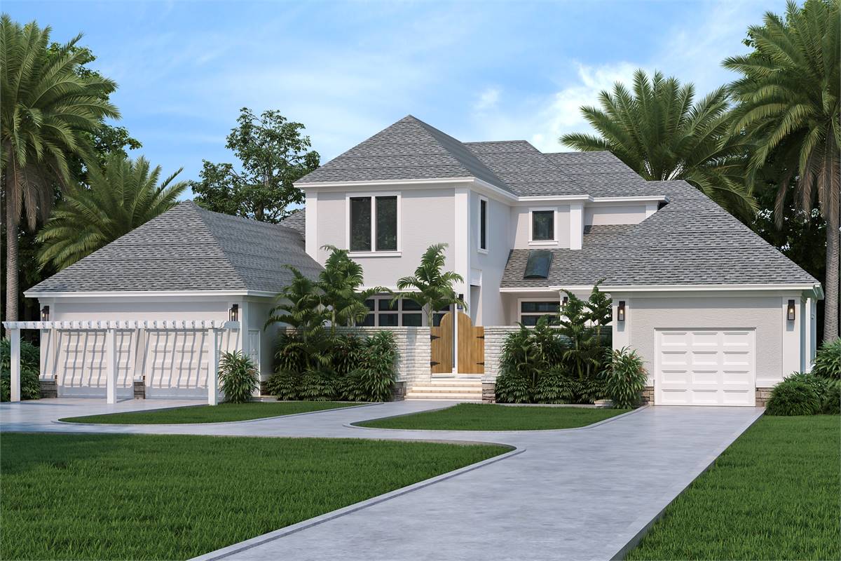 If you're looking for a grand Southern-style home complete with its own courtyard and a chic contemporary vibe, House Plan 6606 is here for your consideration. It boasts 4,366 square feet with 4 bedrooms and a unique layout, so this home offers a luxury living experience you won't find elsewhere. First, you'll find an outstanding owners' suite with lounge space and a fully loaded bath on one side of the entrance, along with another bedroom that could be a convenient nursery, study, or guest suite. To the other side, you'll find the spacious open-concept living area, anchored by a huge island kitchen on the side wall. Continue back through the mudroom and you'll come to the attached two-car garage, but that's not all! There's another one-car garage at the next corner of the floor plan, which helps create a back wall to close in the courtyard. There's plenty of outdoor space to enjoy out here, and the secondary bedroom and dining area will take in great views of it. Head upstairs and you'll find two more bedroom suites, a balcony overlooking the living room, and access to the veranda you see in front. House Plan 6606 offers an amazing design with this layout, but you can also reverse it to put the garages and courtyard in front, if you prefer!