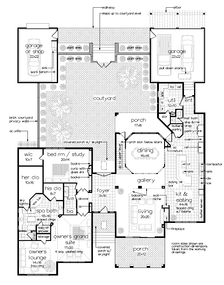 Each set of construction documents includes detailed, dimensioned floor plans, basic electric layouts, cross sections, roof details, cabinet layouts and elevations, as well as general IRC specifications. They contain virtually all of the information required to construct your home. The typical plan set does not include any plumbing, HVAC drawings, or engineering stamps due to the wide variety of specific needs, local codes, and climatic conditions. These details and specifications are easily obtained from your builder, contractors, and/or local engineers.