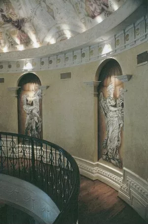 Sweet dreams are made of striking architecture, bold lines, and a dash of the past. Corinthian columns announce an inviting entry and accent the sweeping staircase in the foyer, which opens to the formal dining hall and grand salon. A bow window brings in plenty of light and a sense of nature, while a massive fireplace anchors this voluminous living space. Open to the morning nook and kitchen, the keeping room shares the flow of its hearth with the casual eating areas. Well-organized amenities, such as an angled cooktop, dual food preparation islands, and a walk-in pantry facilitate even crowd-sized events. Barrel vaults accent the master suite on the main floor, which opens to a covered veranda. Upstairs you will find three family bedrooms, 3 baths, and a guest suite.
