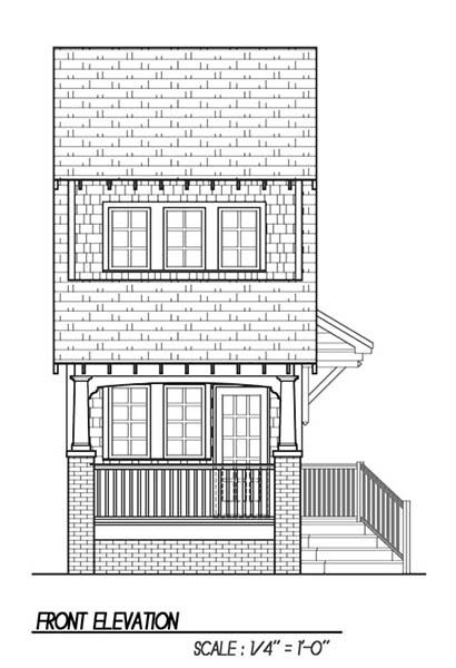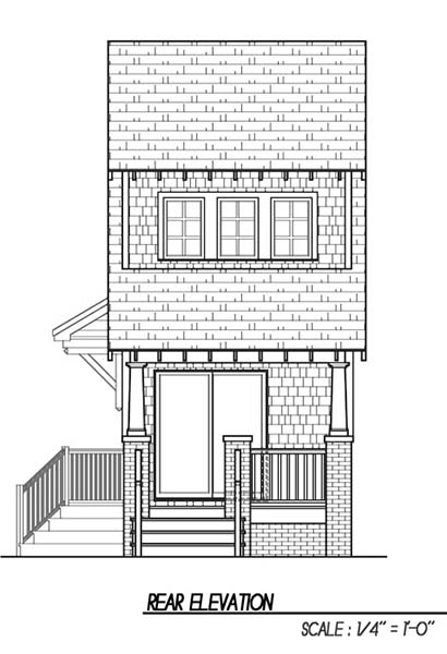 Pencil-thin is a hyphenated word, listed in the Oxford dictionary to describe “really skinny”. This house plan qualifies with its width at just 12-0 feet. There are lots that require a super narrow profile by the closeness of side property boundaries. The urban streets of Baltimore have many examples of row houses even narrower than 12-0 feet. Other plans in our portfolio provide front entrances to very narrow house plans. This one has a side entry, Kitchen in the rear, Living Room in the front. There is a bedroom at each end of the second floor and two full bathrooms upstairs. If three bedrooms are required we have a variation of this plan with an additional Master suite on the third floor.