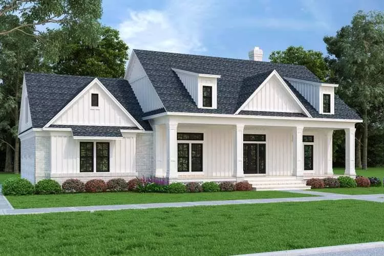 A beautiful front entryway catches your eye and beckons you inside to discover all that this rustic modern farmhouse has to offer. Charming exposed wooden beams pair perfectly with the country-style windows and sloping front roofline, creating a great facade. Beyond the covered porch and dual front doors awaits a spacious layout comprised of 3 bedrooms, 2 bathrooms, and 1,932 square feet. Throughout the 1.5 floor home you'll notice an emphasis on open spaces and cozy feeling throughout every room. From the totally open 2-story living room that is flanked by the gourmet kitchen and dining space, to the massive back deck, this home is designed to make the most out of it all. Beyond the kitchen is your master suite, a relaxing oasis made just for you, featuring a large walk-in closet and a gorgeous spa bath. The other two bedrooms are tucked away on the other side of the home, creating a comfortable and private separation for you and the kids. And speaking of kids, check out the bonus rooms that are upstairs. Perfect for customization and expansion either now or in the future, everyone will love what these rooms are capable of.