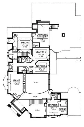 This Mediterranean luxury mansion house plan brings your dreams to reality. From the two-story foyer, step down into the elegant dining room with its bar, two-story tall bank of front windows, and private entrance to the garden. The quiet study offers a coffered ceiling, warming fireplace and large bank of windows to allow the sun to stream through. A family bedroom includes a curved sitting area, large walk-in closet, and full bath. The breakfast area has a built-in window seat, access to the patio, and warming fireplace that will also keep the kitchen cozy. The kitchen incorporates a desk, pantry, free-standing island, and breakfast bar to share with the breakfast area and family room. The spacious master bedroom offers a curved sitting area, a bar, and a see-through fireplace. The lavish master bath boasts his and hers vanities, separate shower, whirlpool tub, and large wardrobe. From the master suite, you can step out onto the patio for a spectacular view. Two two-car garages complete this level of this luxury mansion house plan. Upstairs, three family bedrooms show off tray ceilings, walk-in closets and full baths. A game room boasts built-ins and a private balcony. You'll also find a media room, an owner's retreat, a loggia, and storage space. One of the bedrooms offers a sitting area and private mini-balcony. This completes this Mediterranean luxury mansion house plan.