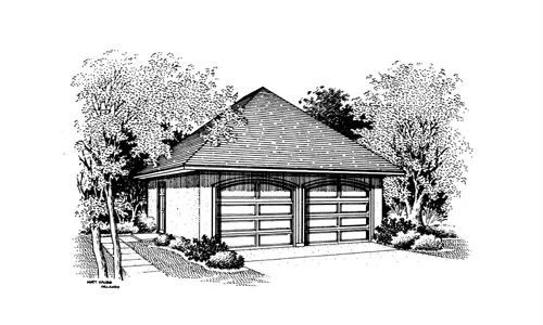 If your home does not have a garage or if you need additional garage space, this detached unit is the perfect solution. The arched garage door openings and the stucco exterior finish will blend well with a home that has a Tuscan, Mediterranean or European style.